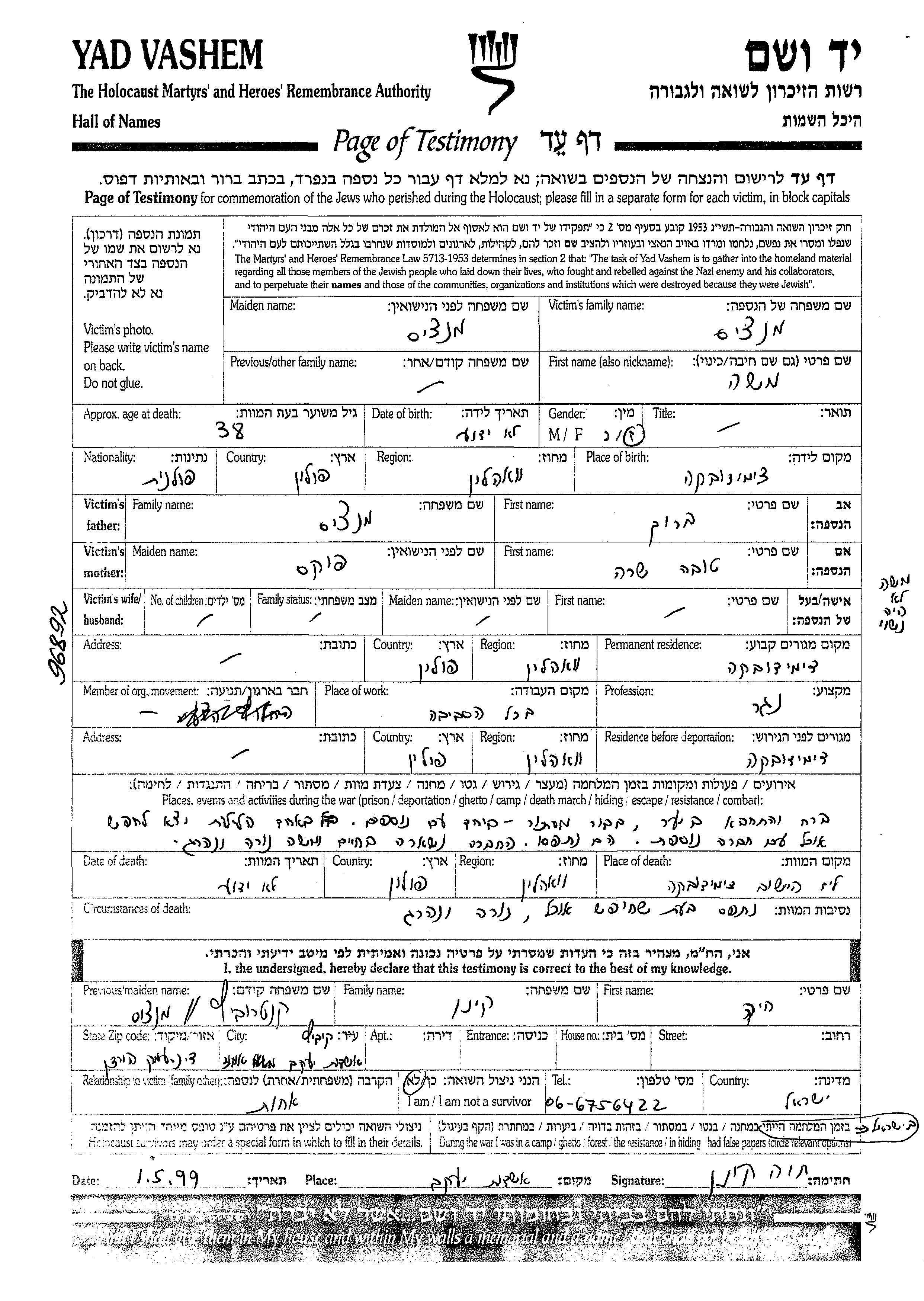 Yad Vashem - Pages of Testimony Names Memorial Collection