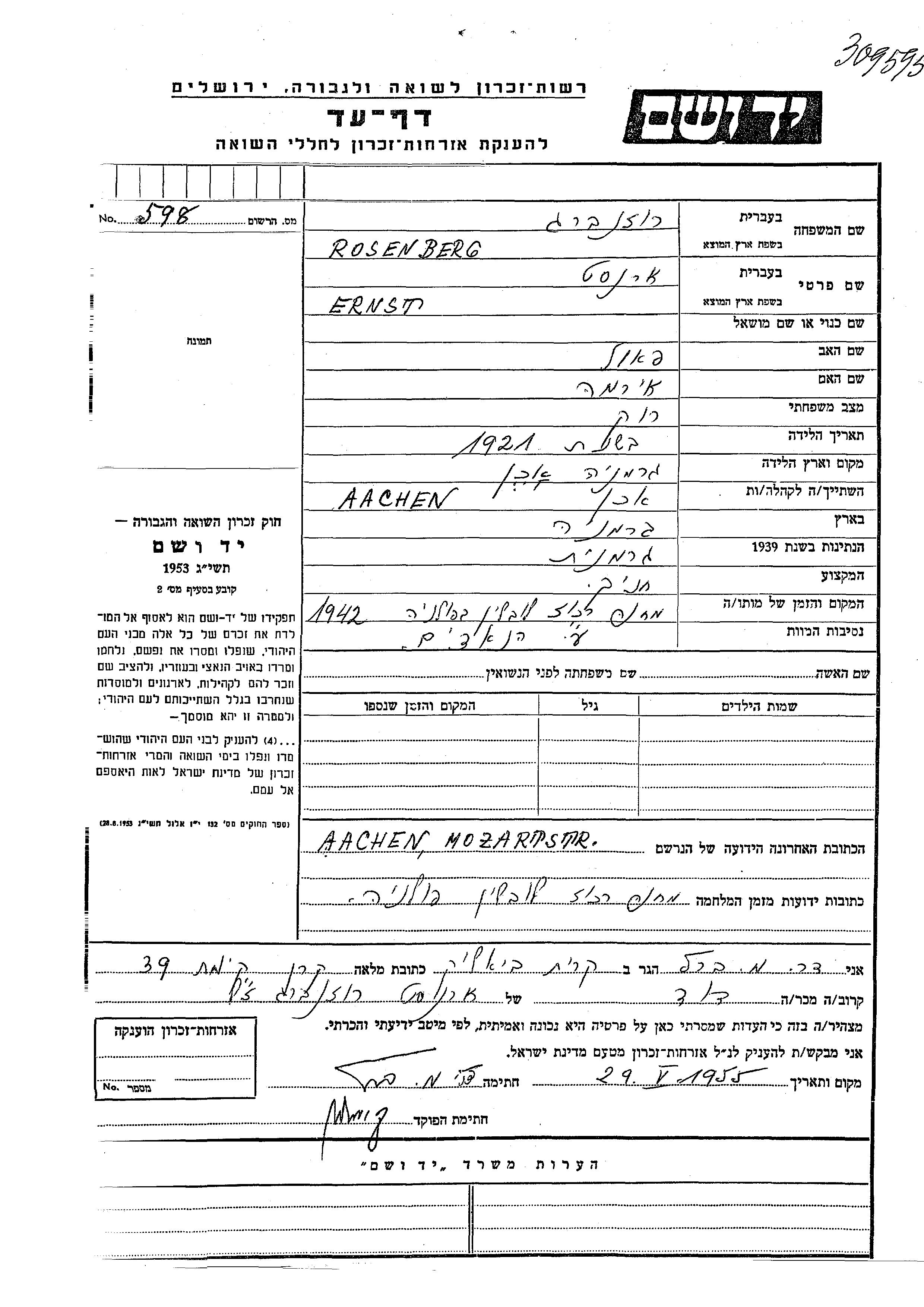 Rosenberg Ernest 1921 Aachen, Germany Page of Testimony