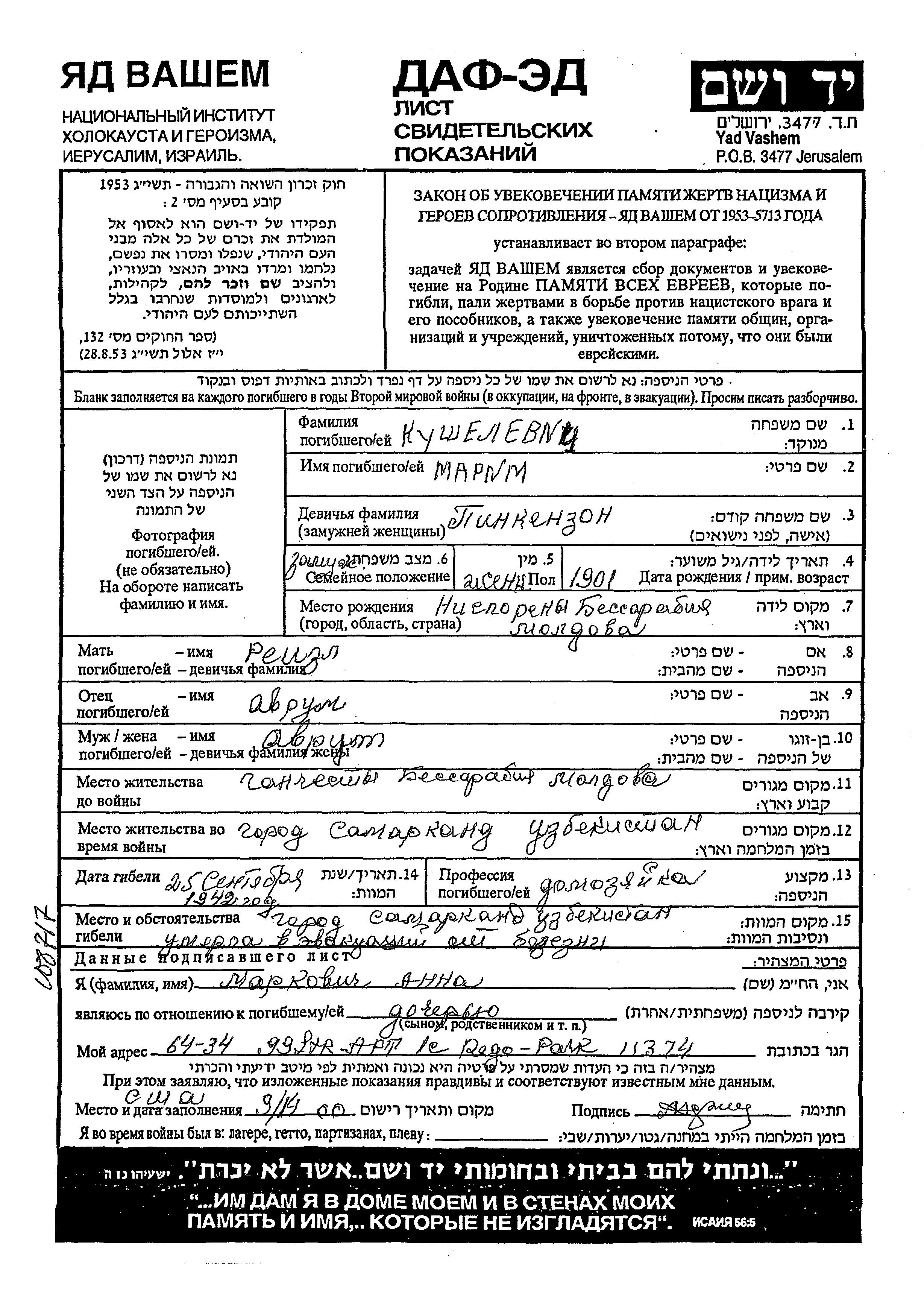 Yad Vashem - Pages of Testimony Names Memorial Collection
