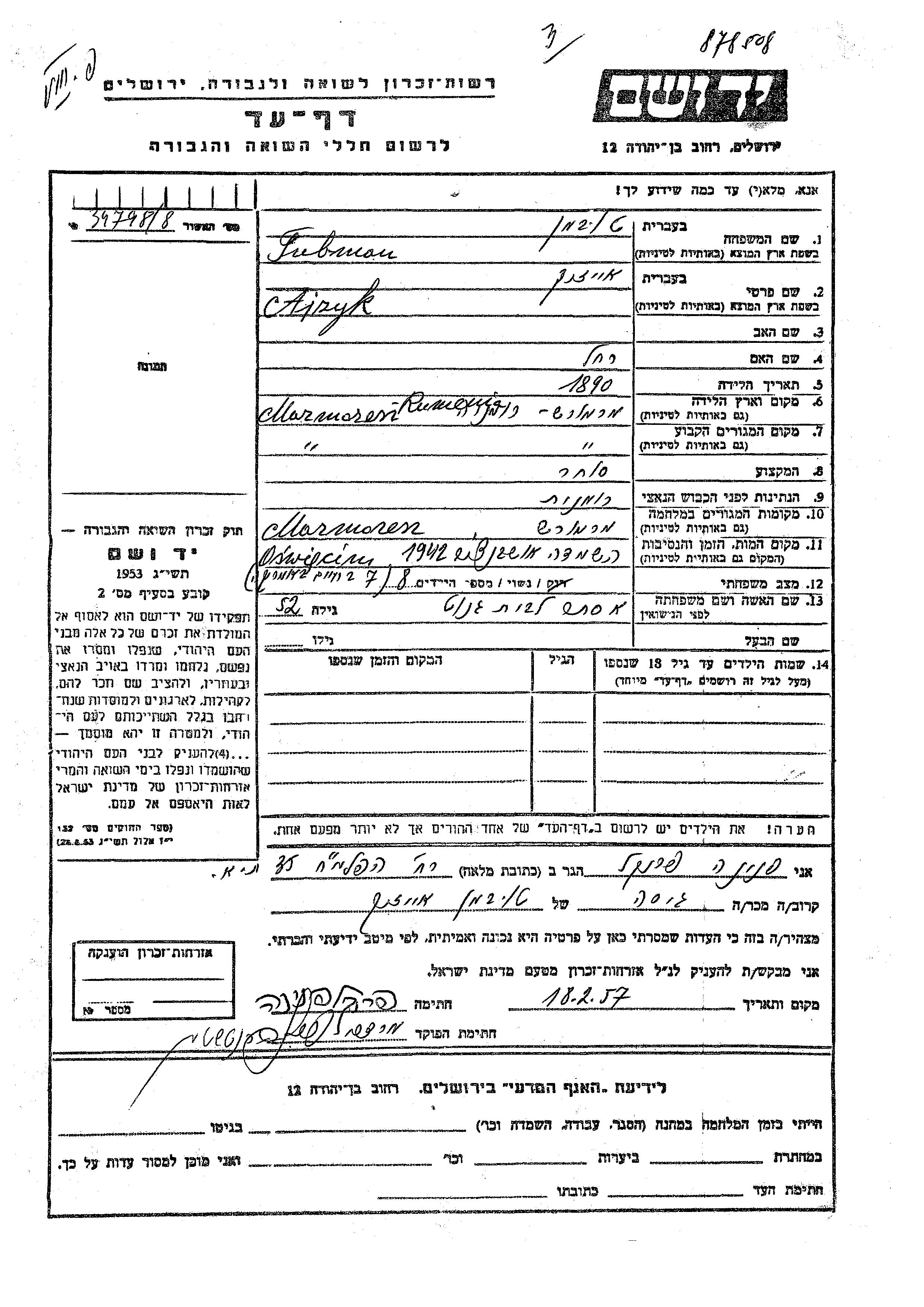Yad Vashem - Pages of Testimony Names Memorial Collection