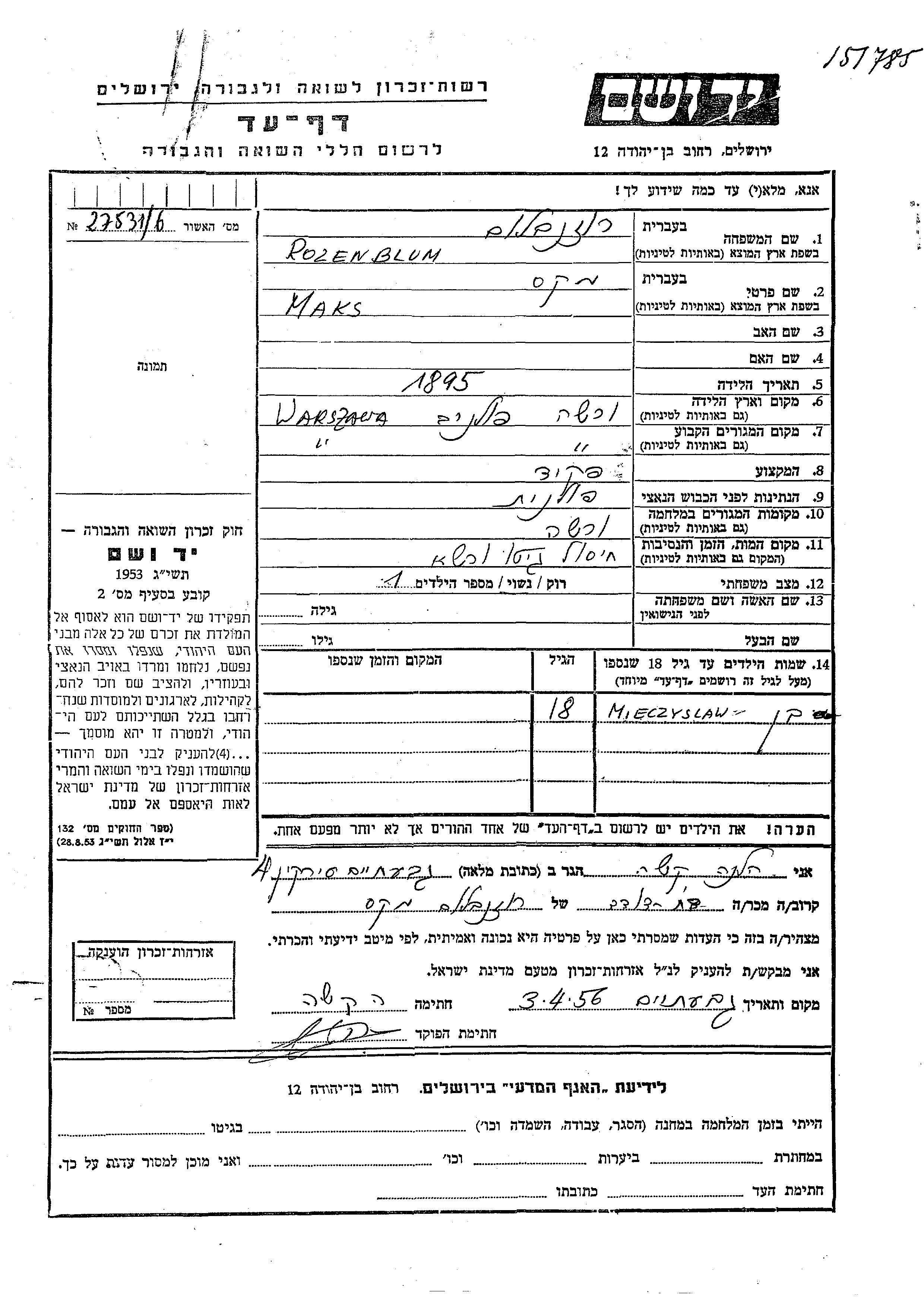 Rozenblum Max 1895 Warszawa, Poland Page of Testimony