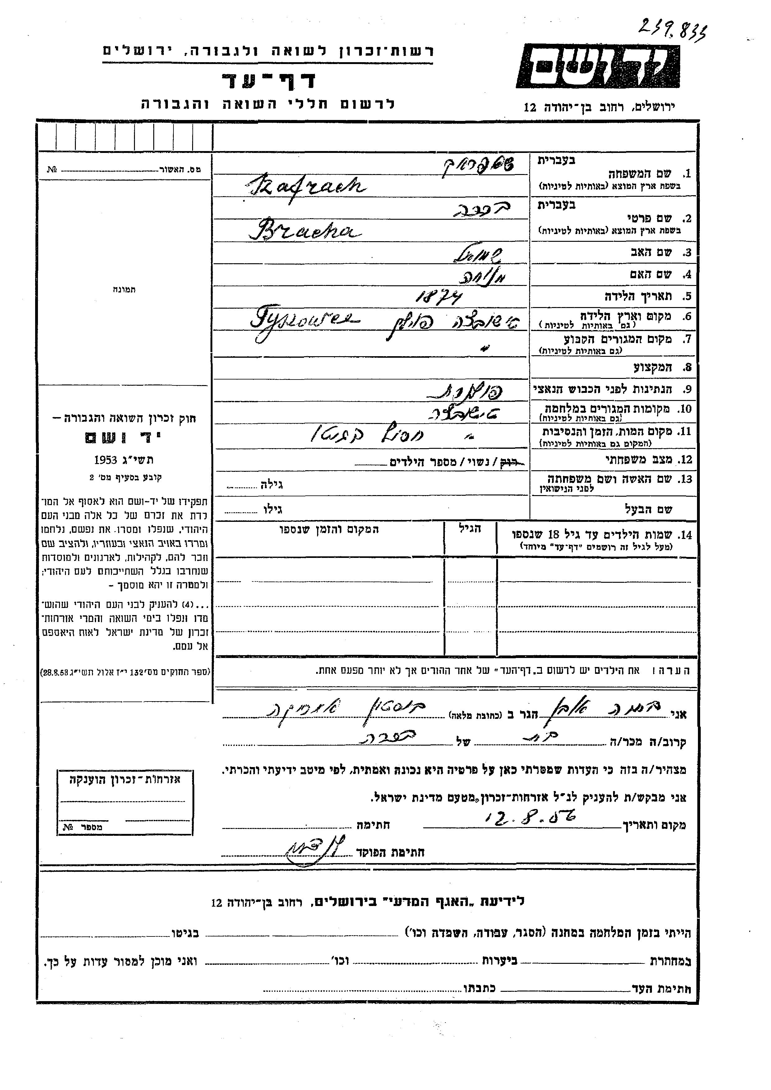 Yad Vashem - Pages of Testimony Names Memorial Collection
