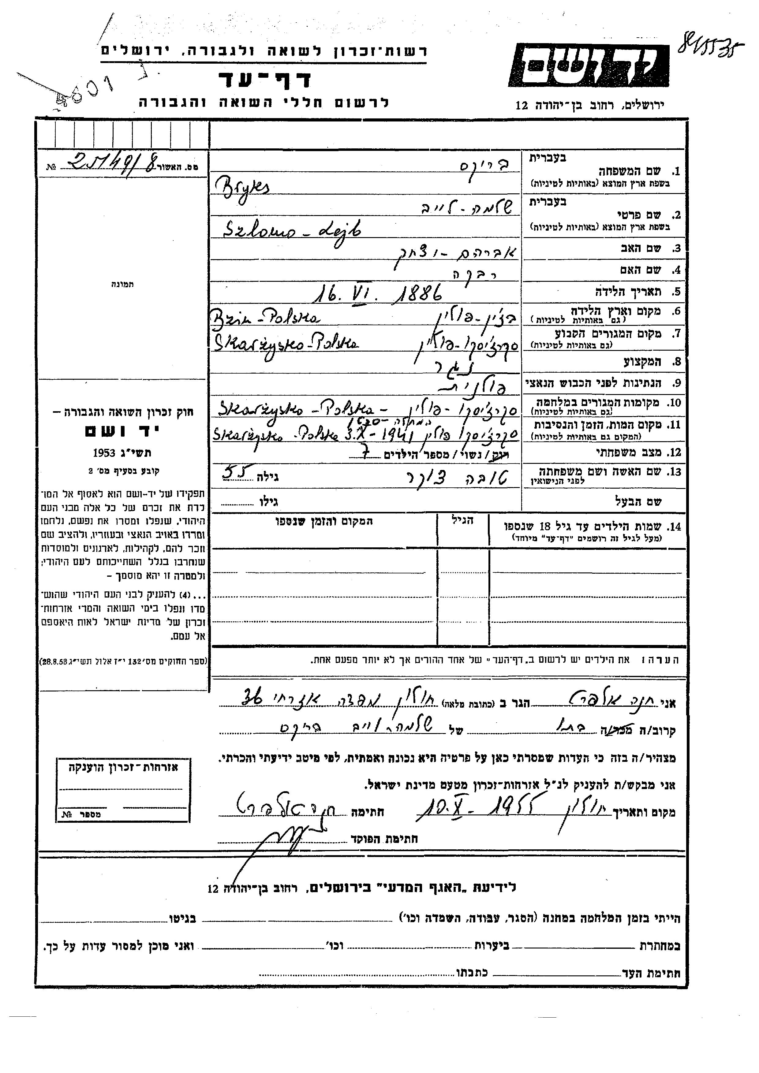 Yad Vashem - Pages of Testimony Names Memorial Collection