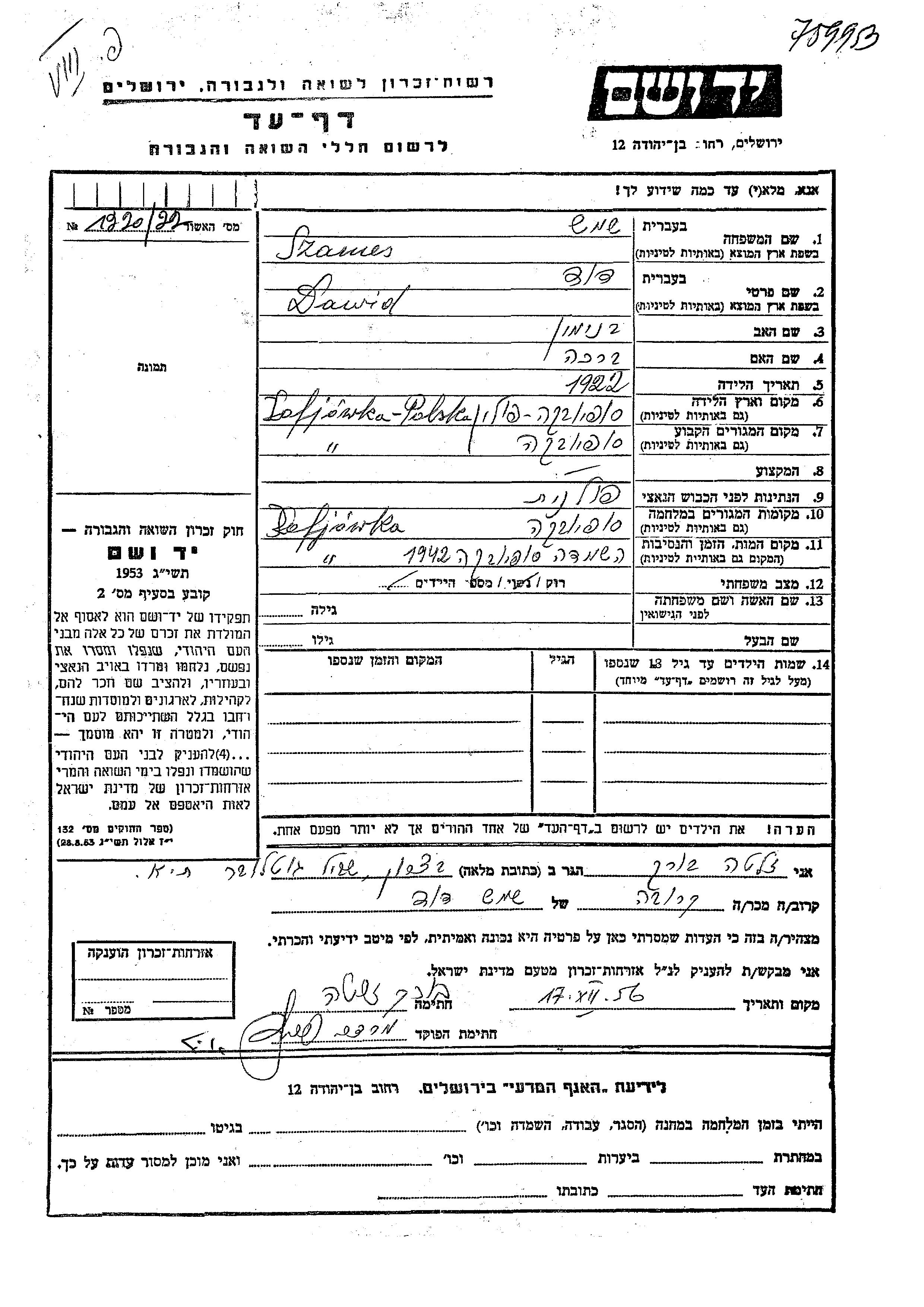 Szames Shemesh Dawid 1922 Zofjówka, Poland Page of Testimony