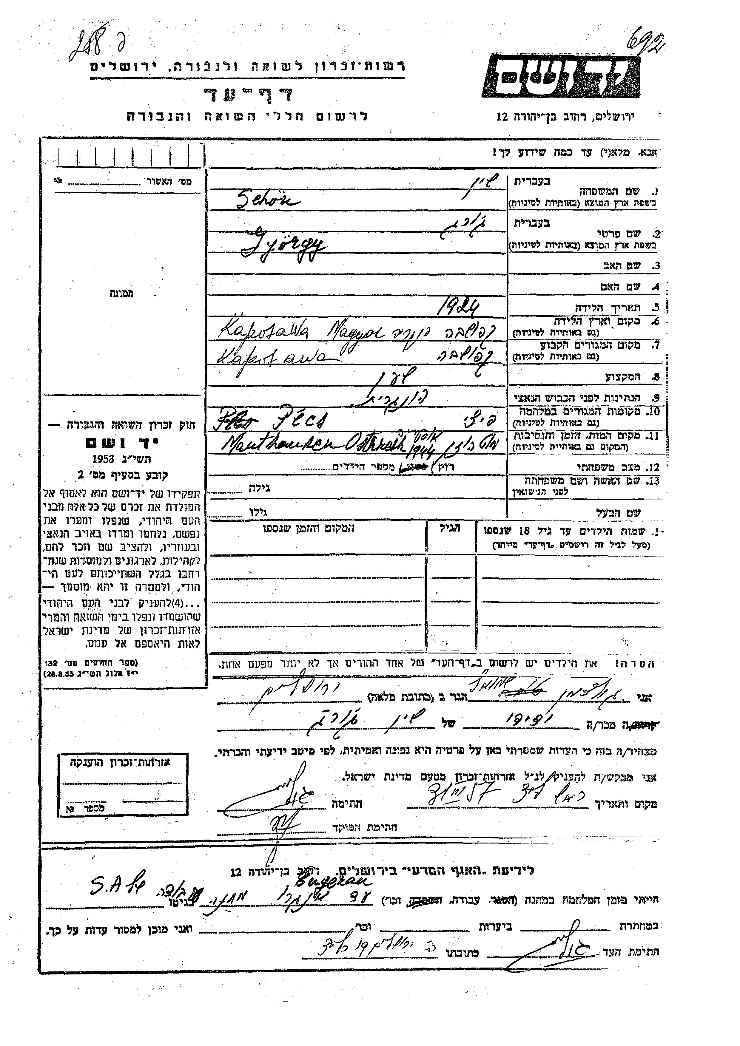 Schoen Shin Gyorgy 1924 Kaposzwar, Hungary Page of Testimony