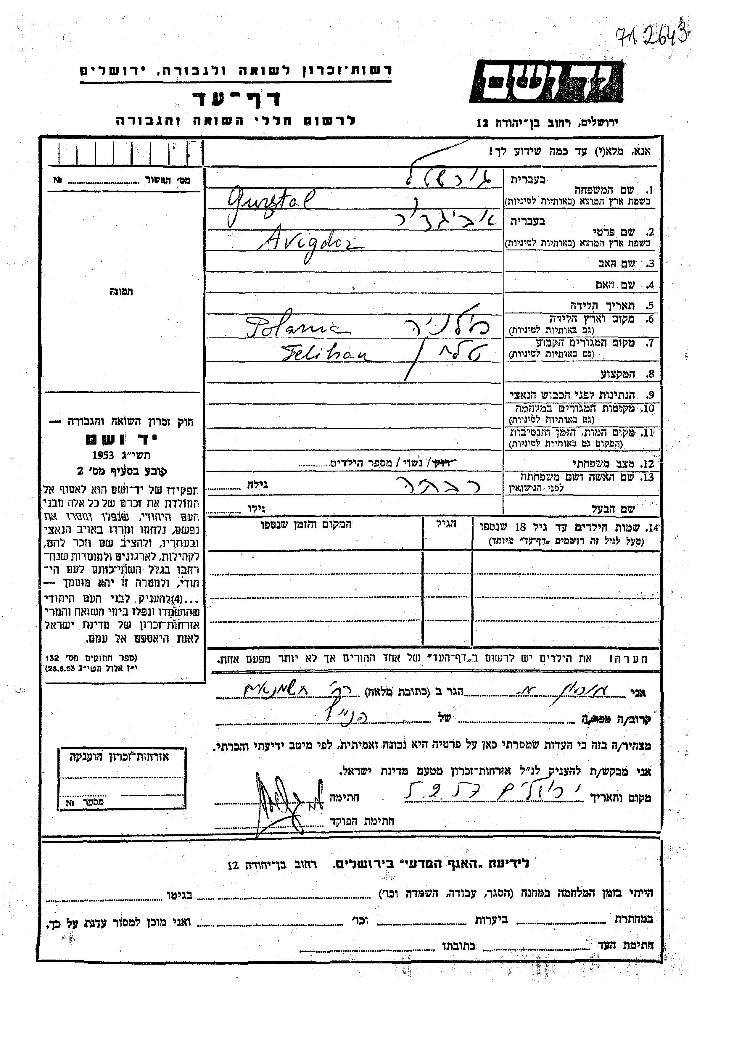 Yad Vashem - Pages of Testimony Names Memorial Collection