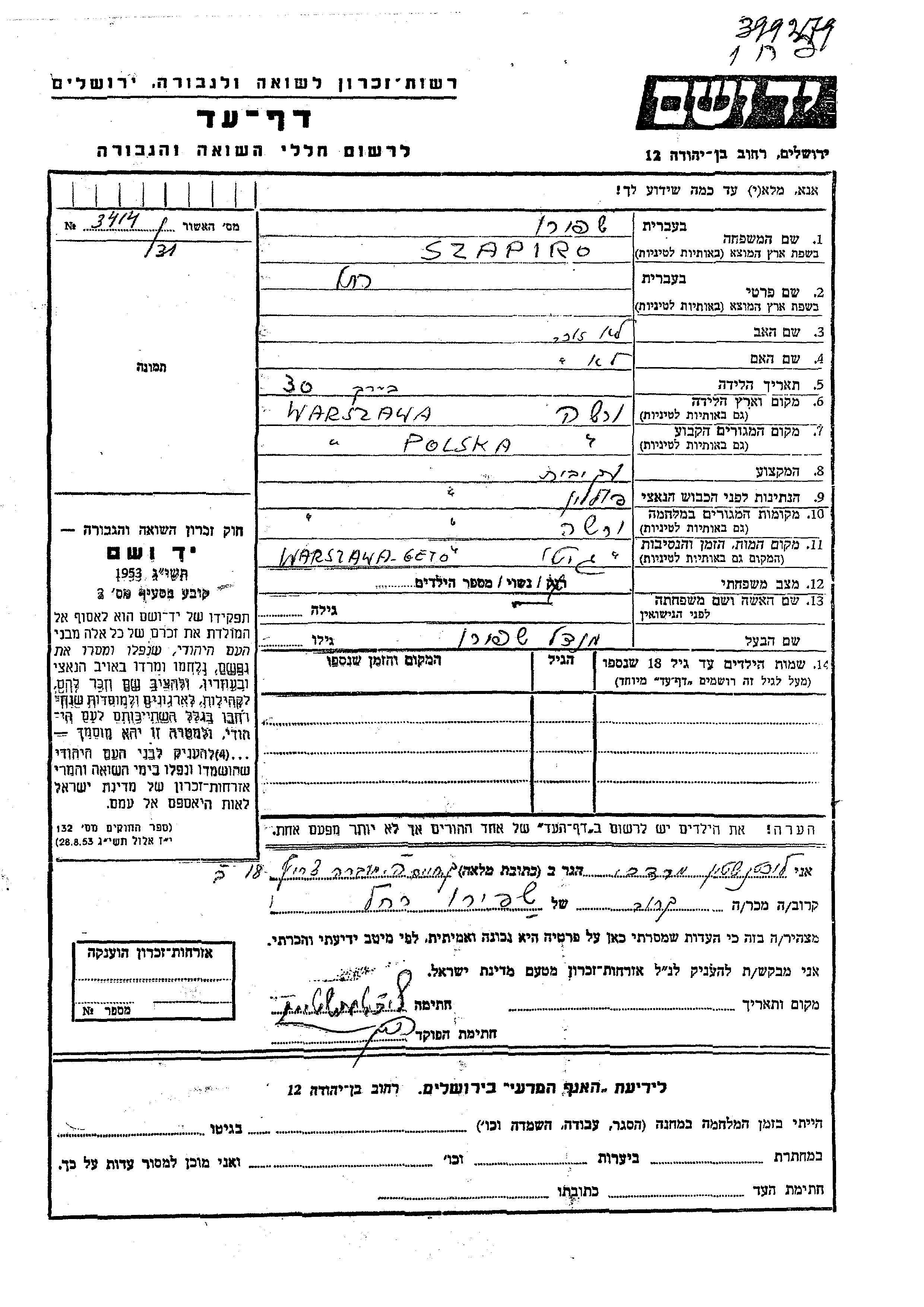 Szapiro Rakhel Warszawa, Poland Page of Testimony