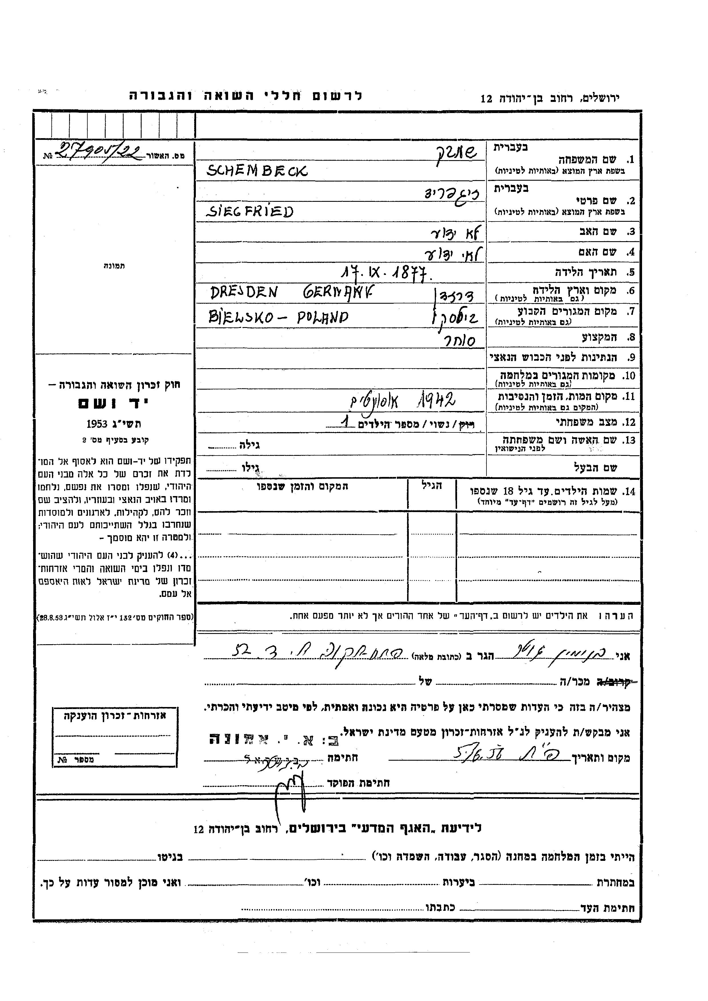 Schembeck Siegfried 1877 Bielsko, Poland Page of Testimony