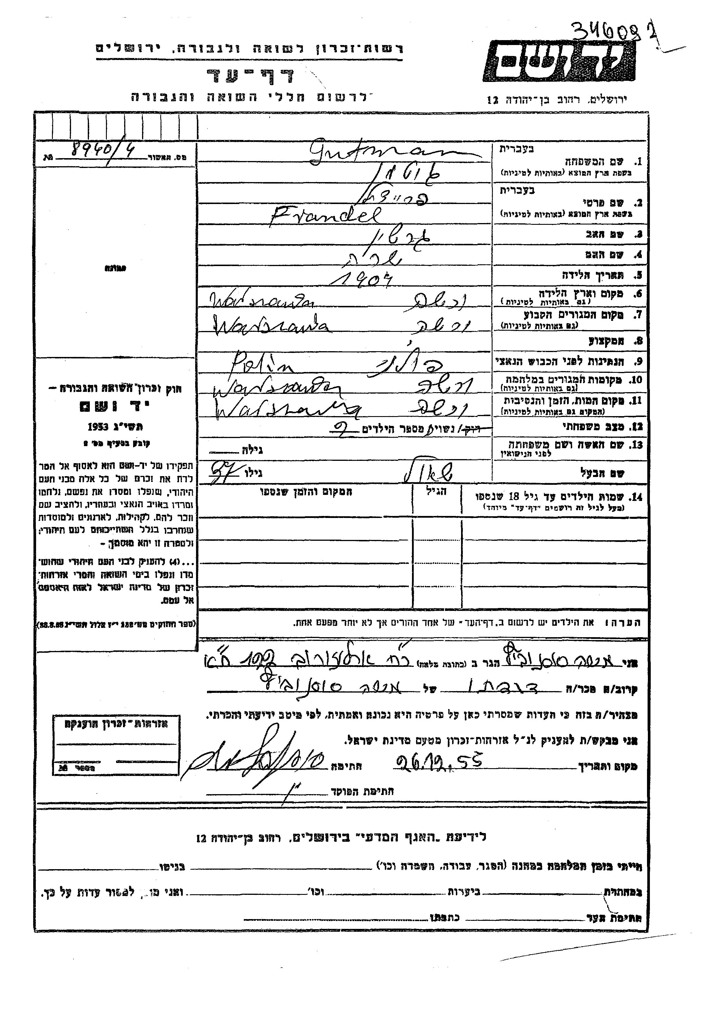 Gutman Frandel Freidel 1904 Warszawa, Poland Page of Testimony