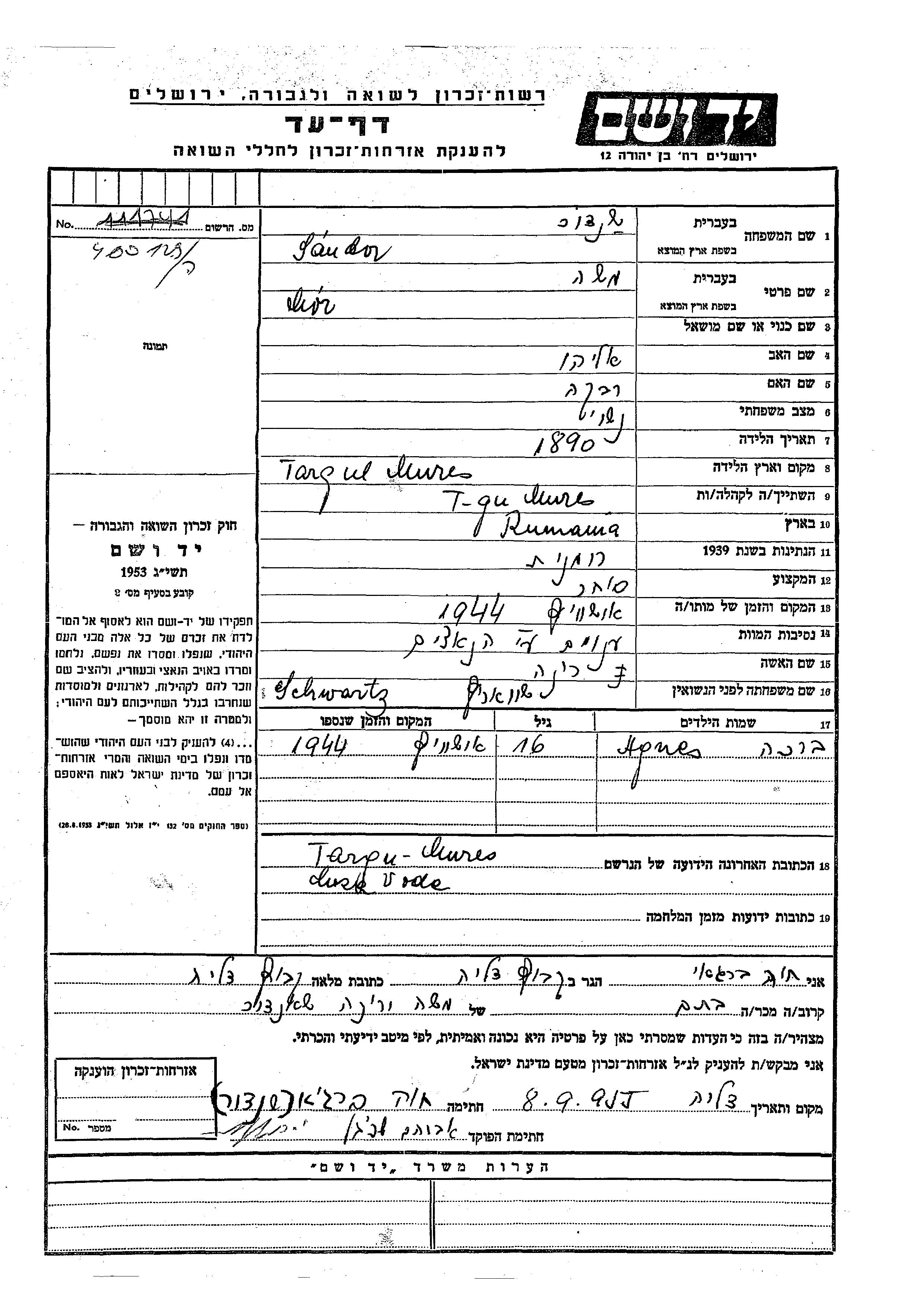 Yad Vashem - Pages of Testimony Names Memorial Collection