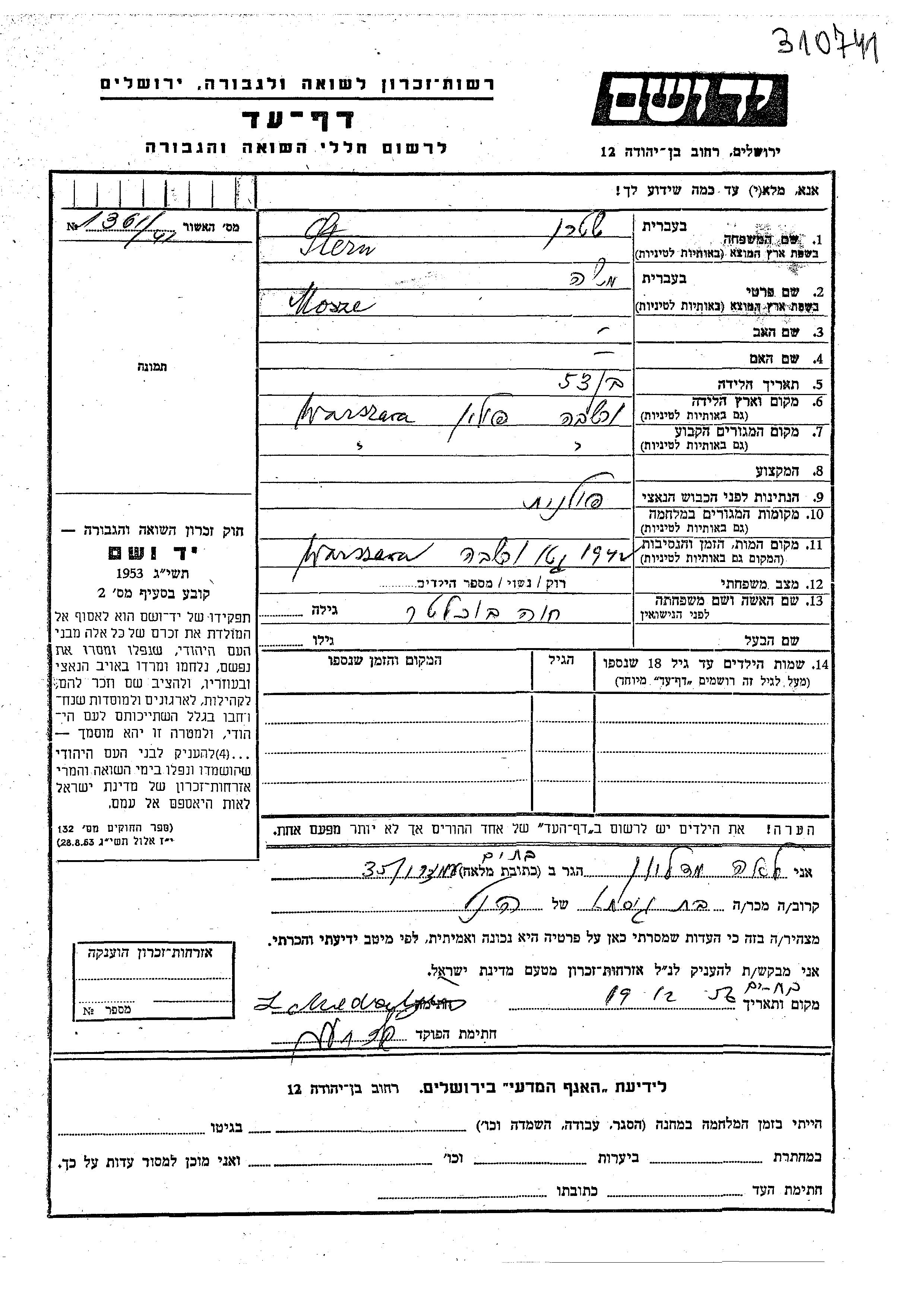 Stern Taran Mosze Warszawa, Poland Page of Testimony