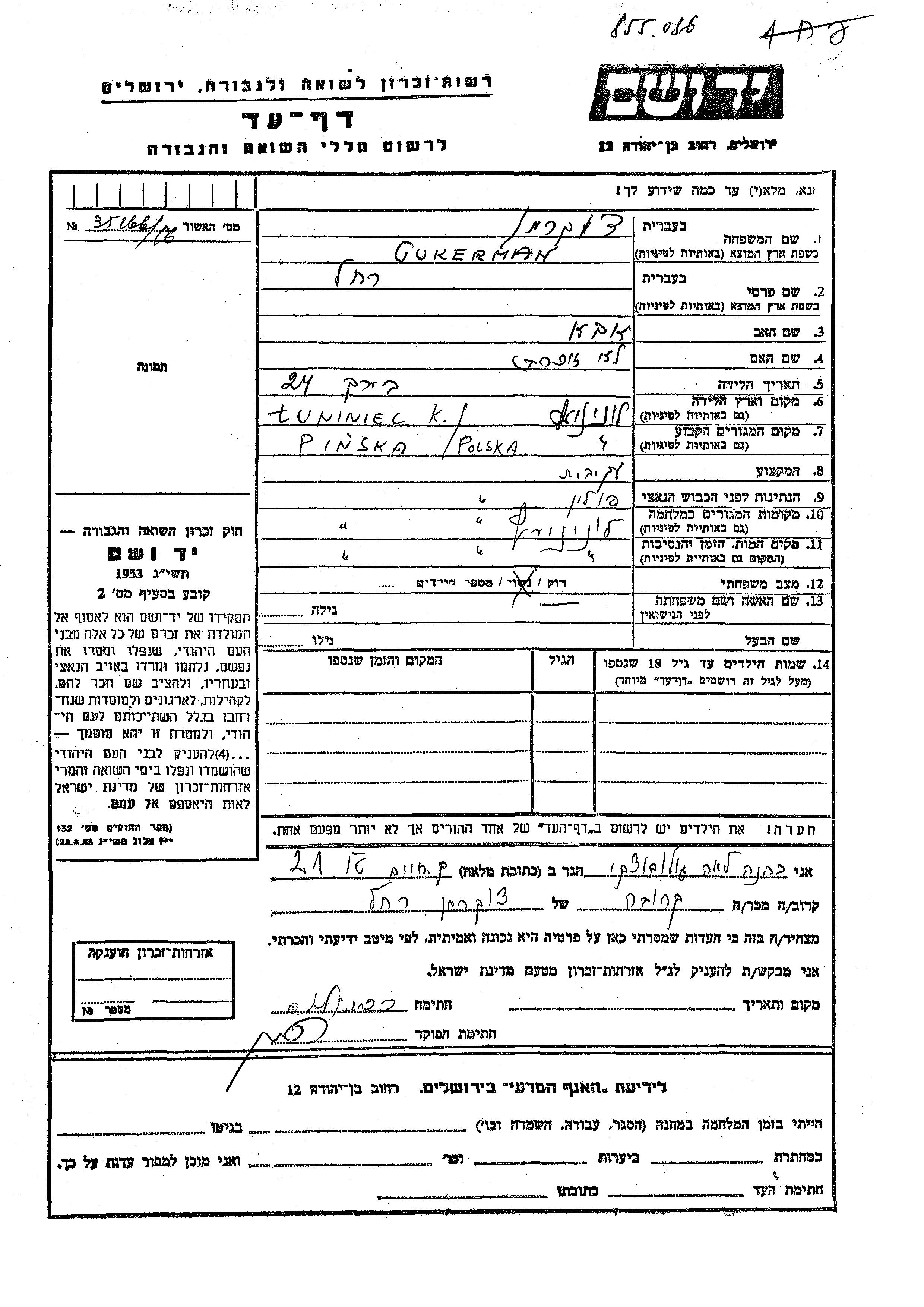 Yad Vashem - Pages of Testimony Names Memorial Collection
