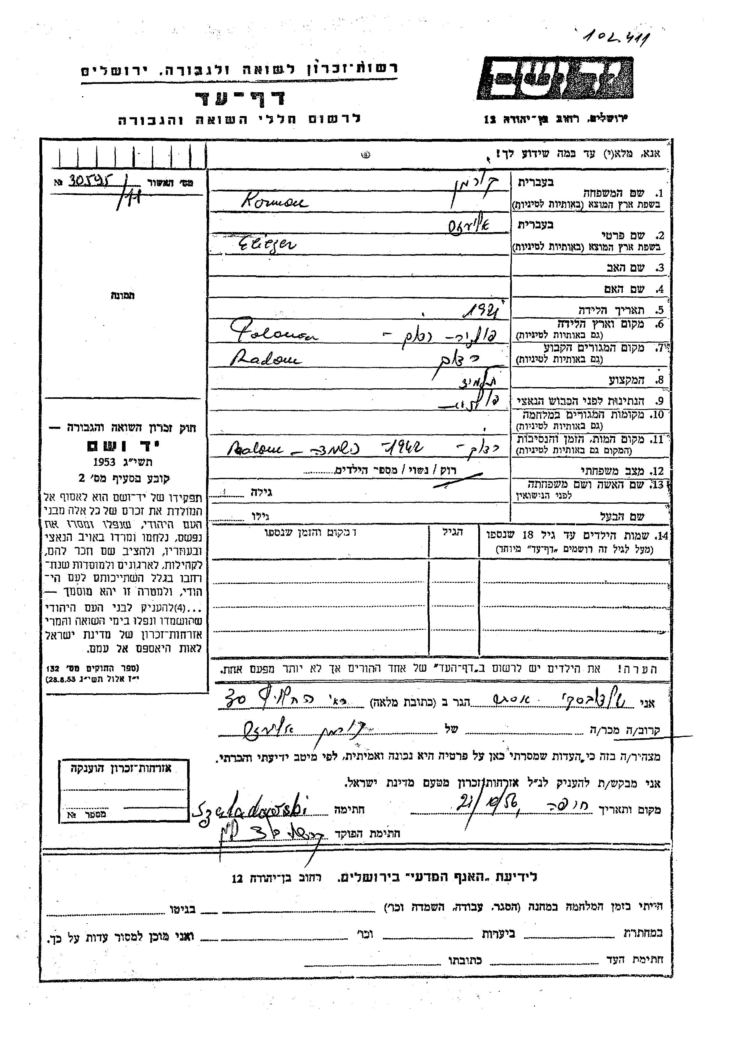 Search by name of Prewar permanent residence, Town, Village, District, Region or Country.