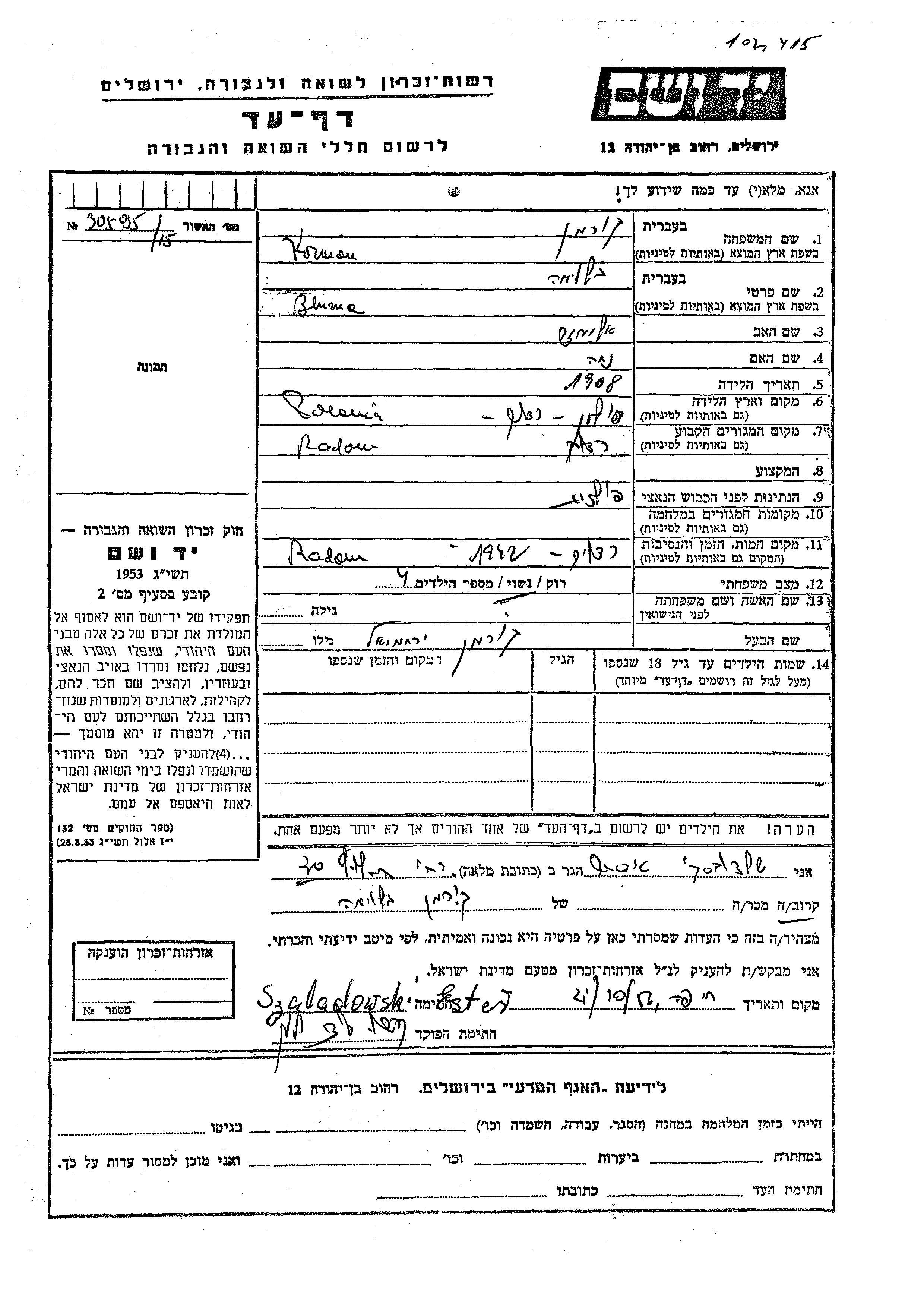 Yad Vashem - Pages of Testimony Names Memorial Collection