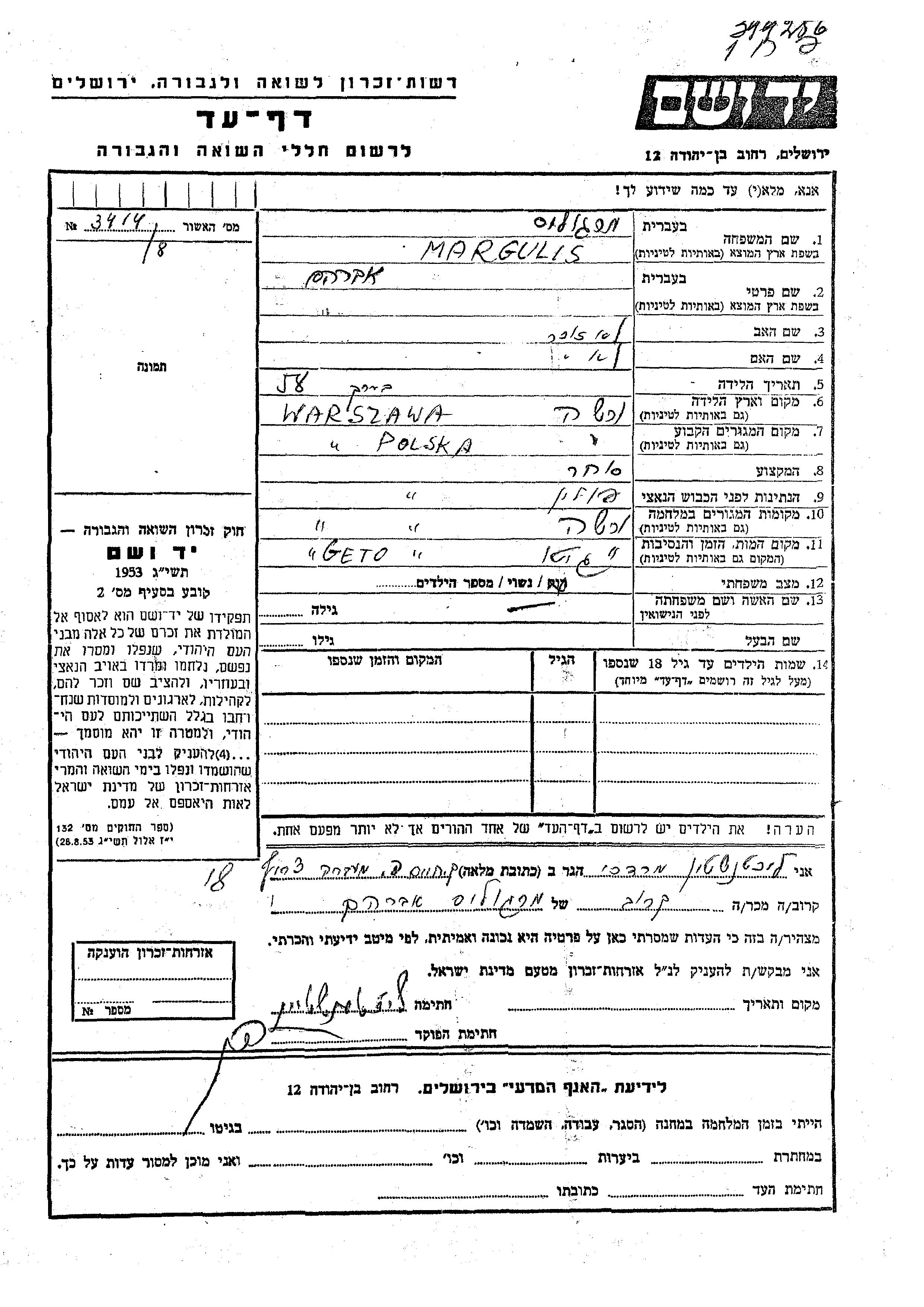 Margulis Avraham Warsaw, Poland Page of Testimony