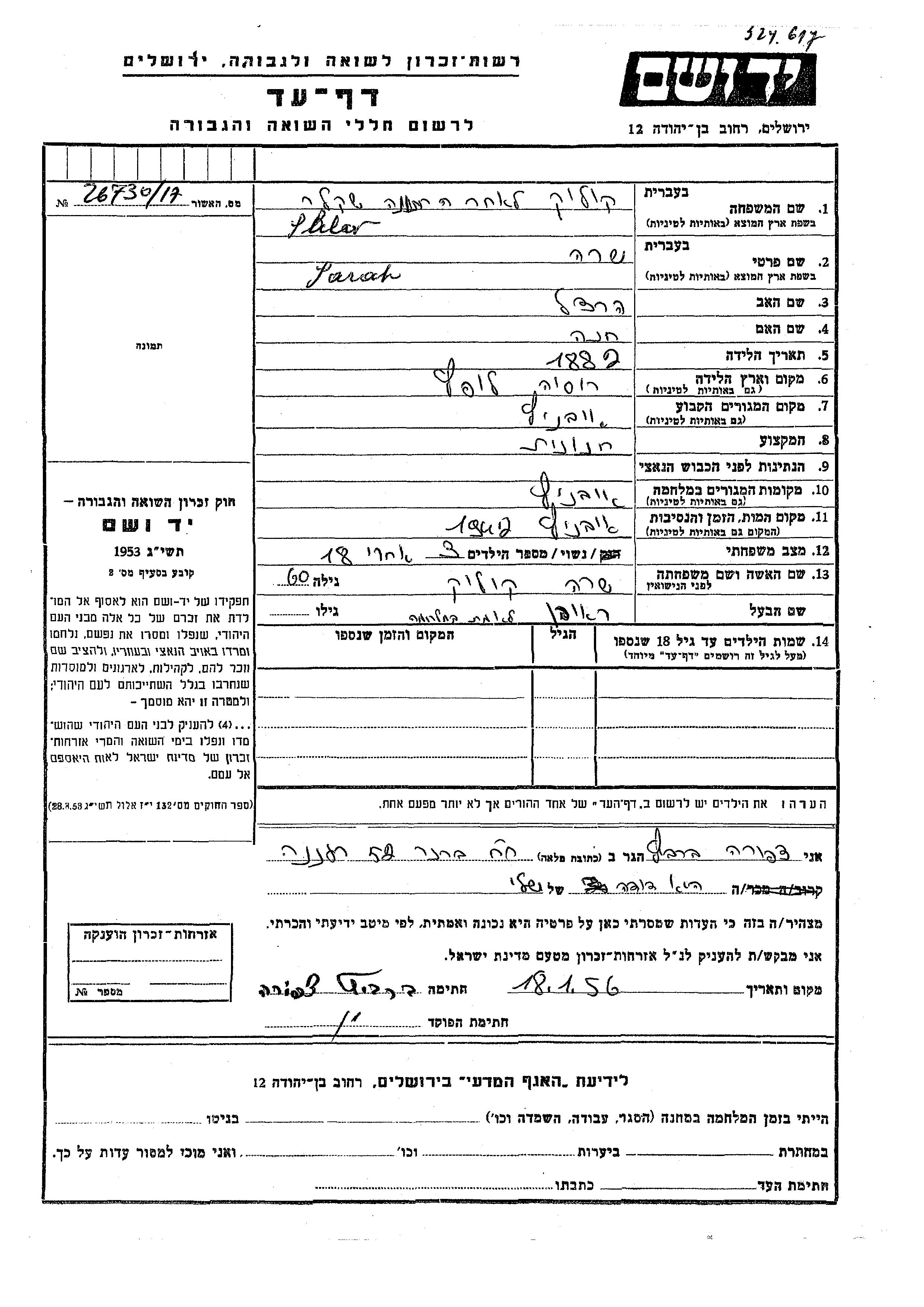 Yad Vashem - Pages of Testimony Names Memorial Collection
