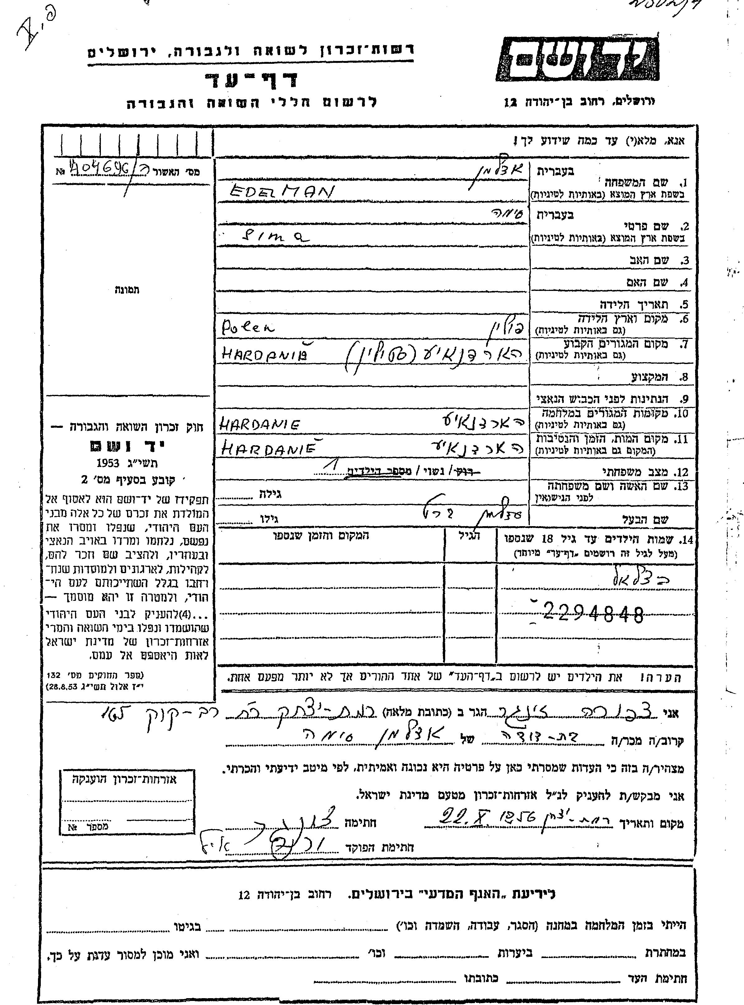 Betzalel Edelman was born to Berl and Sima. He was child. Prior to WWII he lived in Horodnia, Poland. During the war he was in Horodnia, Poland. Betzalel was murdered in the Shoah. Place of death: Horodnia, Poland.