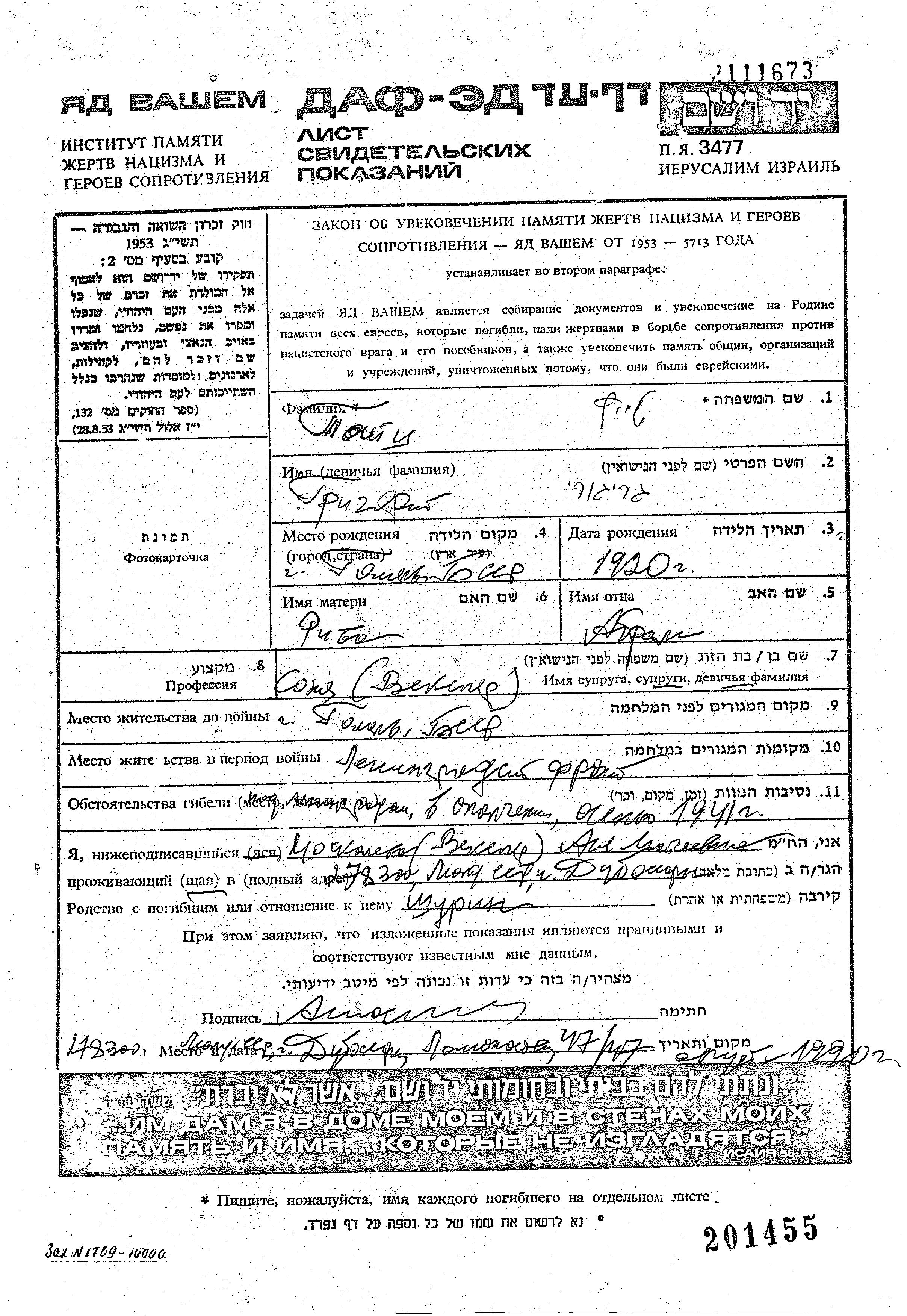 Grigori Taitz was born in Gomel, Belorussia (USSR), 1920 to Abram and Riva. He was married to Sonya nee Veksler. Prior to WWII he lived in Gomel, Belorussia (USSR). During the war he was in the Soviet armed forces. Grigori was killed in military service in WWII. Place of death: Leningrad City, Russia (USSR), 1941.