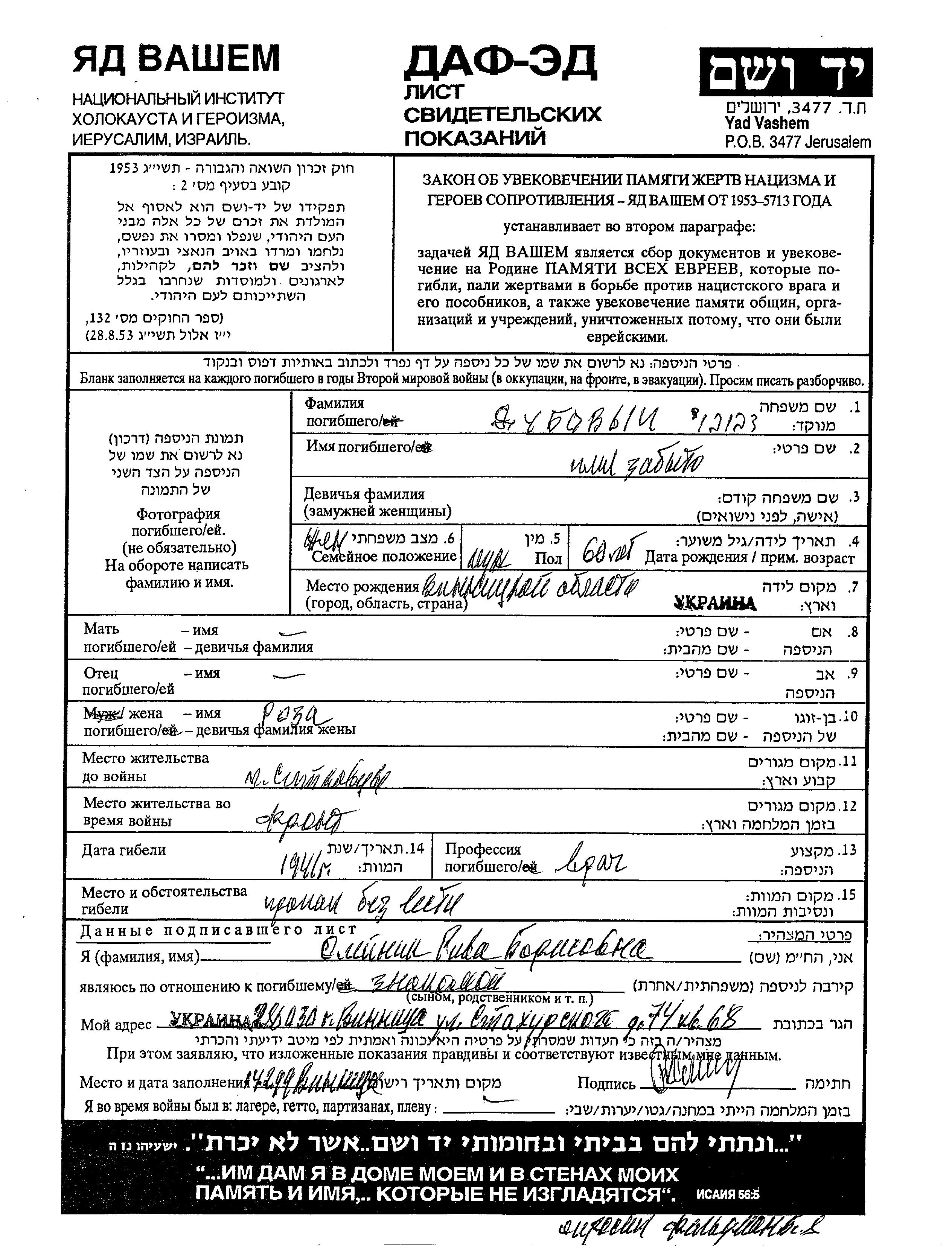 First name unknown Dubovyi was born in Vinnitsa, Ukraine (USSR). He was a physician and married to Roza. Prior to WWII he lived in Sitkovtsy, Ukraine (USSR). During the war he was in the Soviet armed forces. He was murdered in the Shoah.