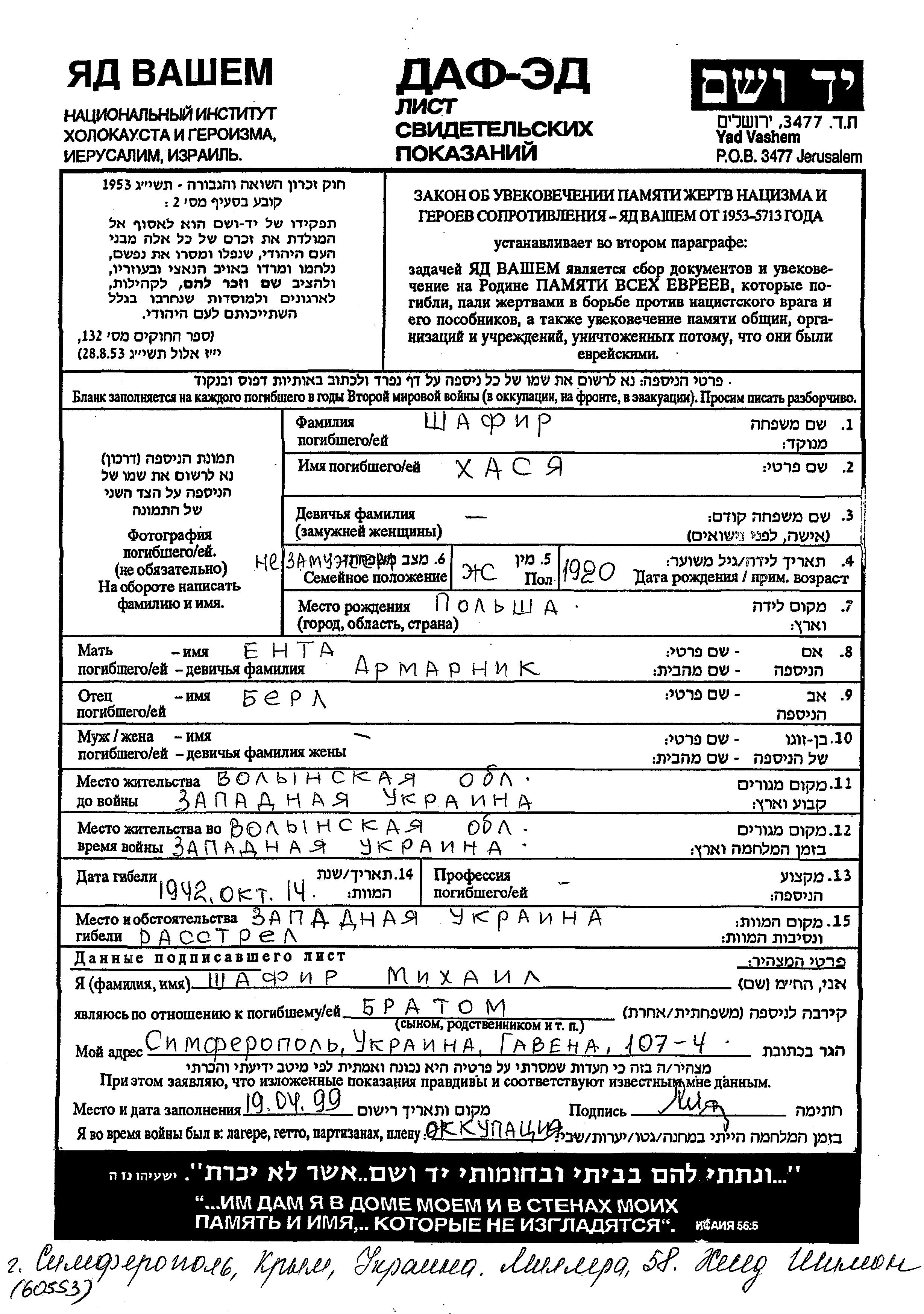 Yad Vashem - Pages of Testimony Names Memorial Collection