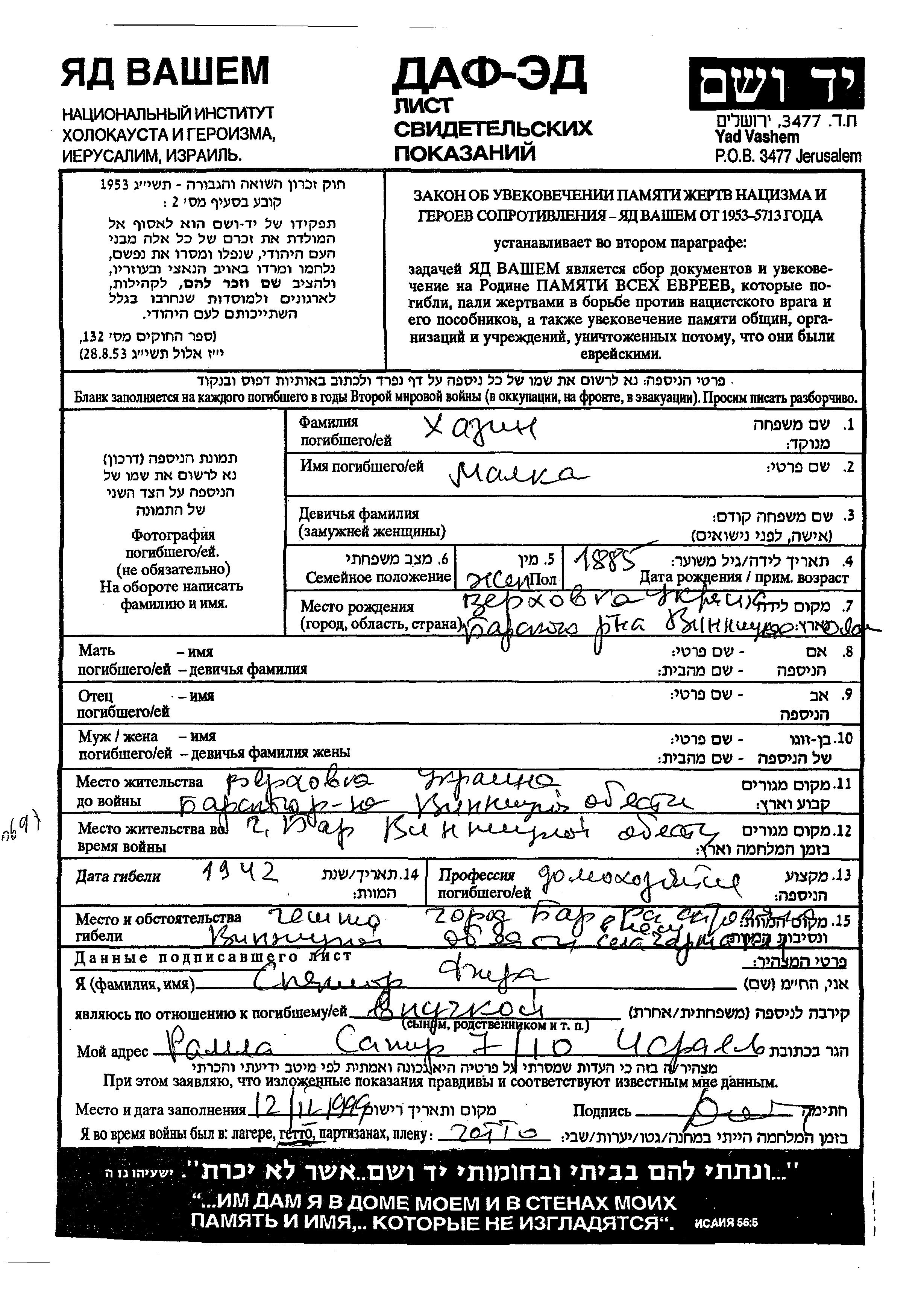 Yad Vashem - Pages of Testimony Names Memorial Collection