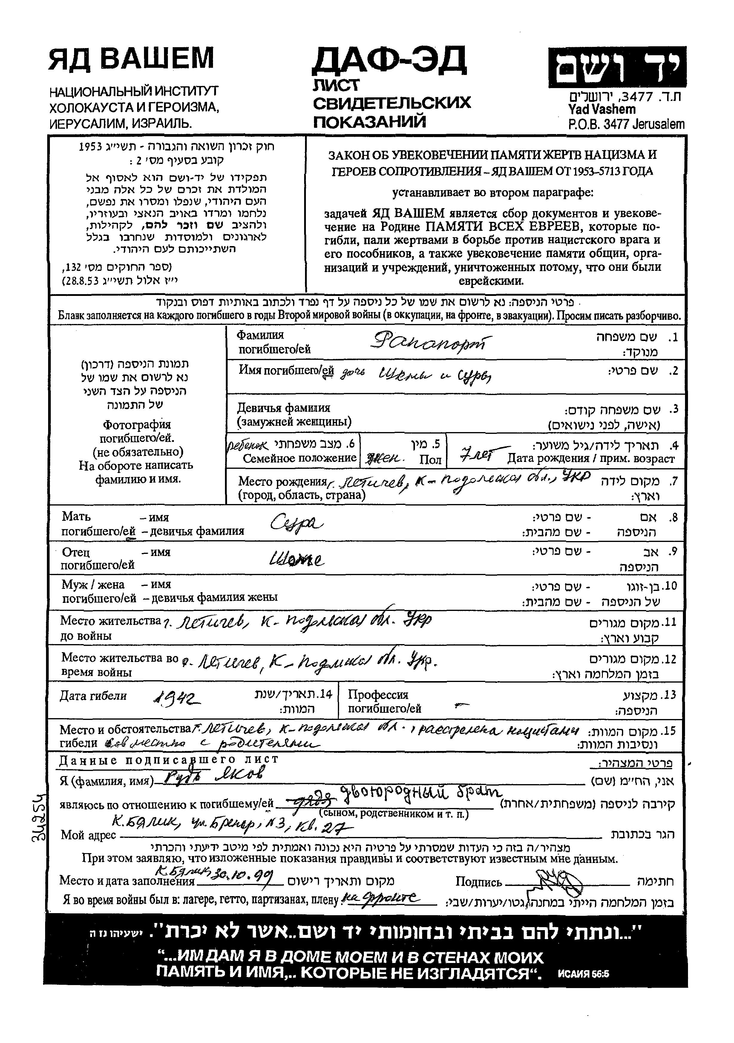 Yad Vashem - Pages of Testimony Names Memorial Collection