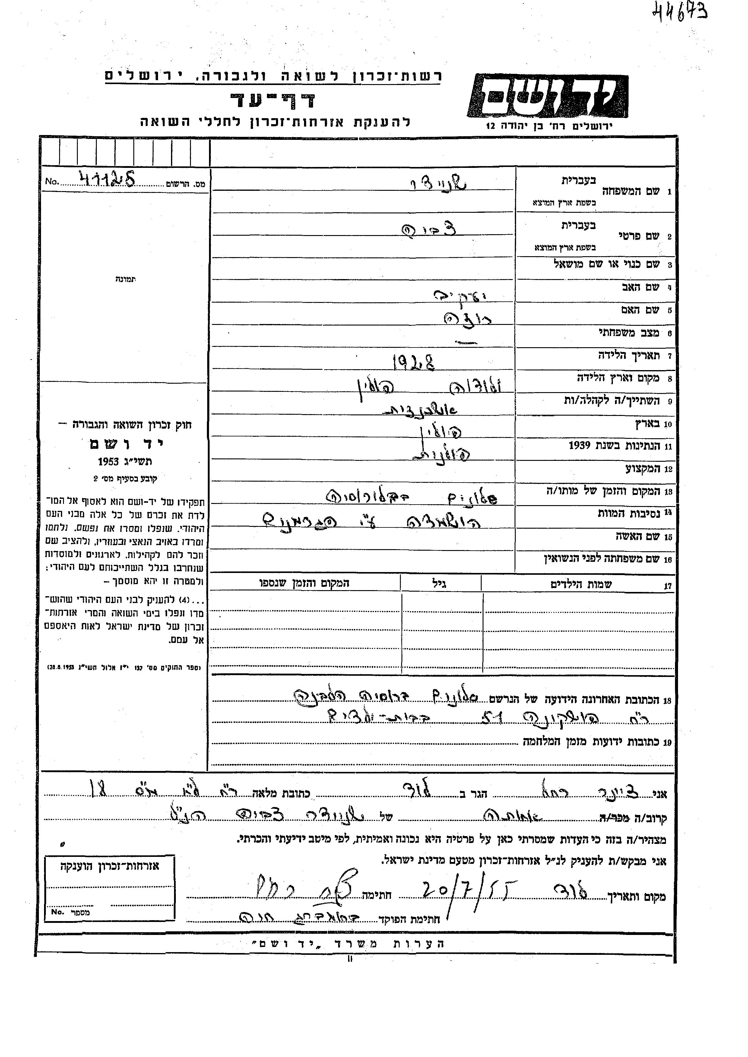 Yad Vashem - Pages of Testimony Names Memorial Collection