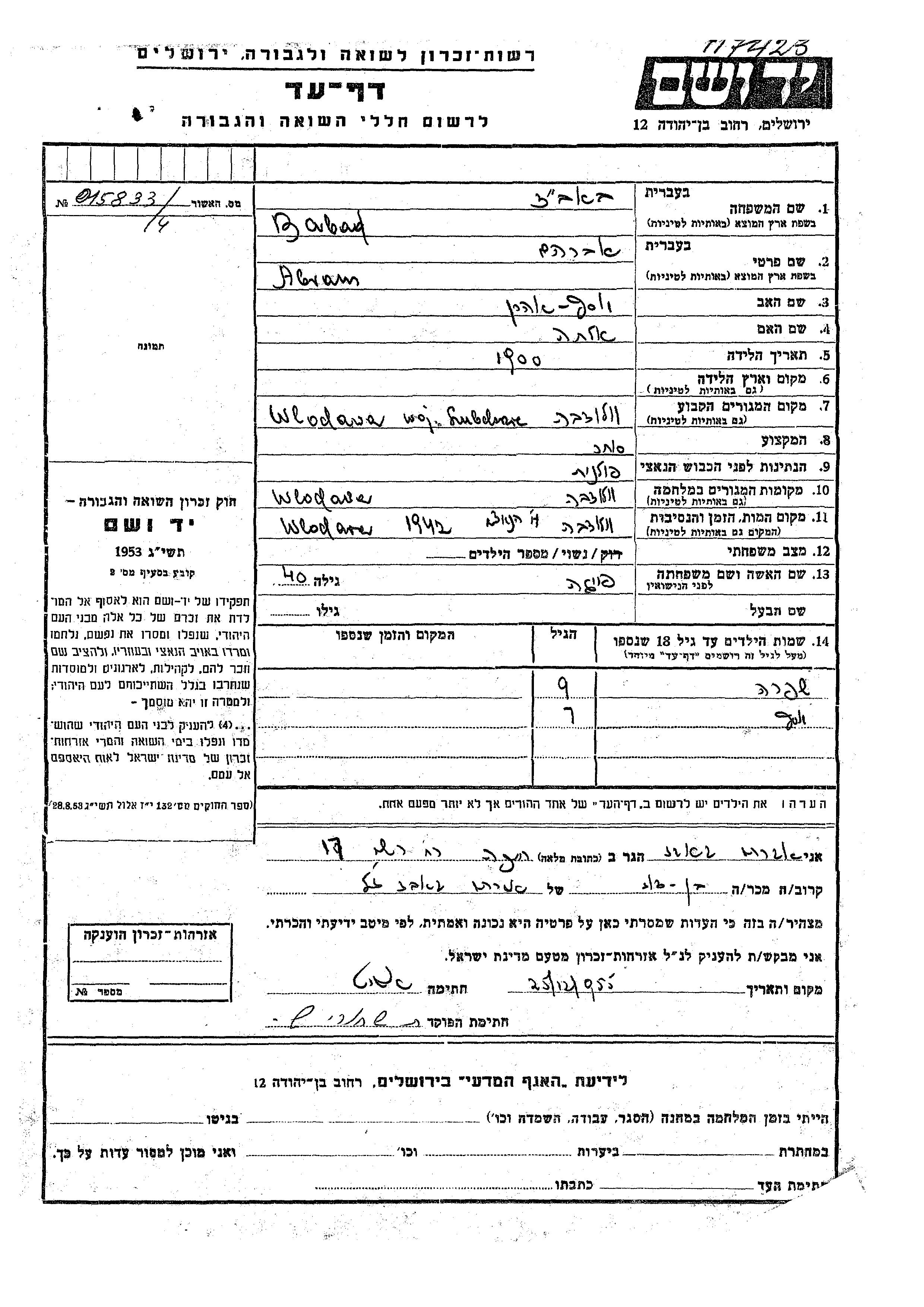 Yad Vashem - Pages of Testimony Names Memorial Collection