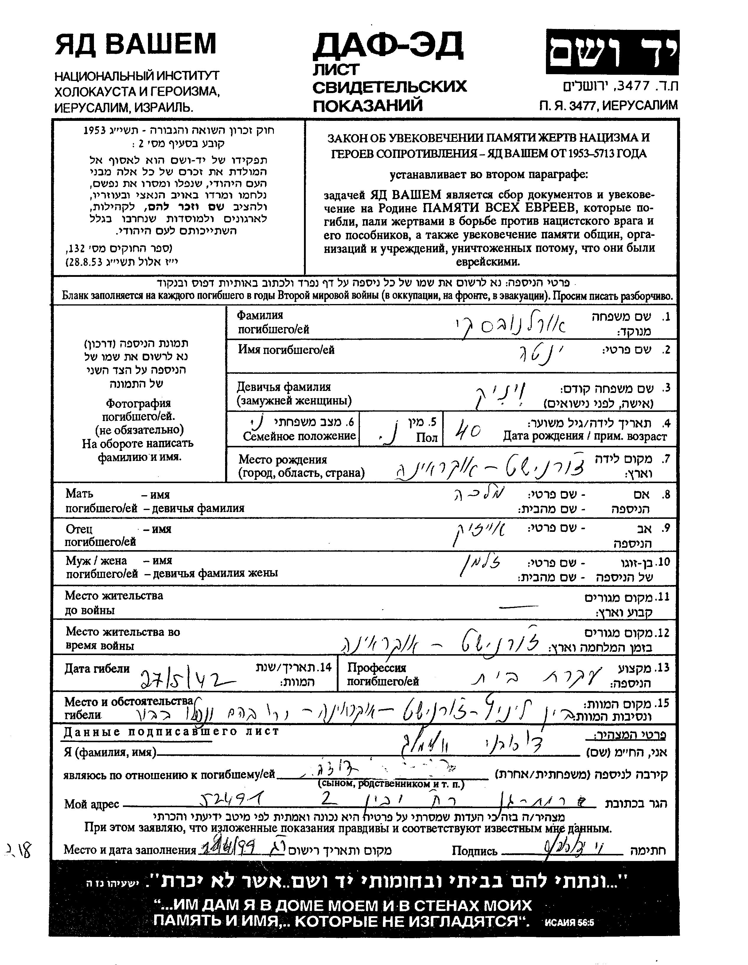 Yad Vashem - Pages of Testimony Names Memorial Collection