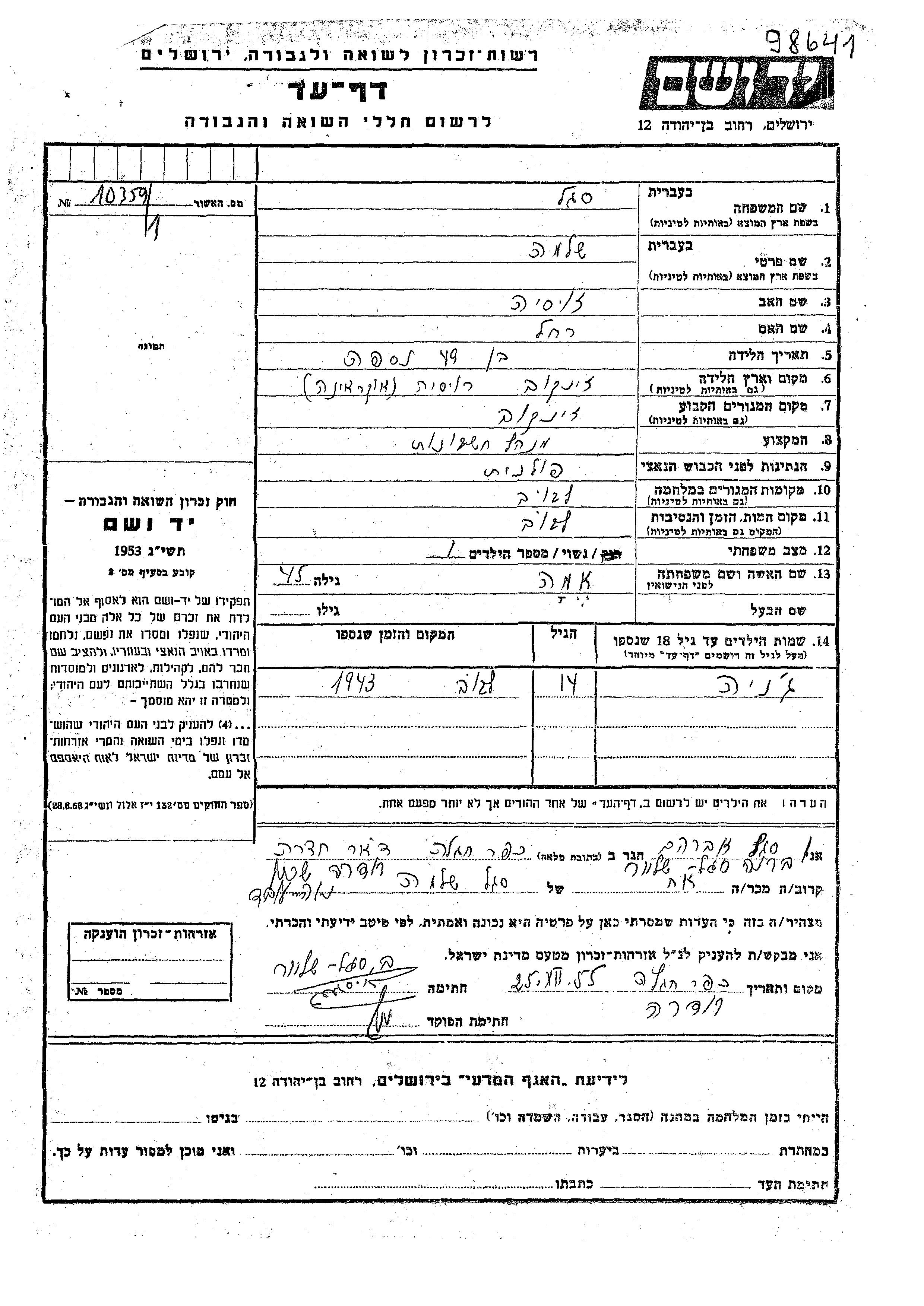 Shlomo Segal was born in Zenkov, Ukraine (USSR) to Zusia and Rakhel. He was a bookkeeper and married to Ema. Prior to WWII he lived in Zenkov, Ukraine (USSR). During the war he was in Lwow, Poland. Shlomo was murdered in the Shoah. Place of death: Lwow, Poland.