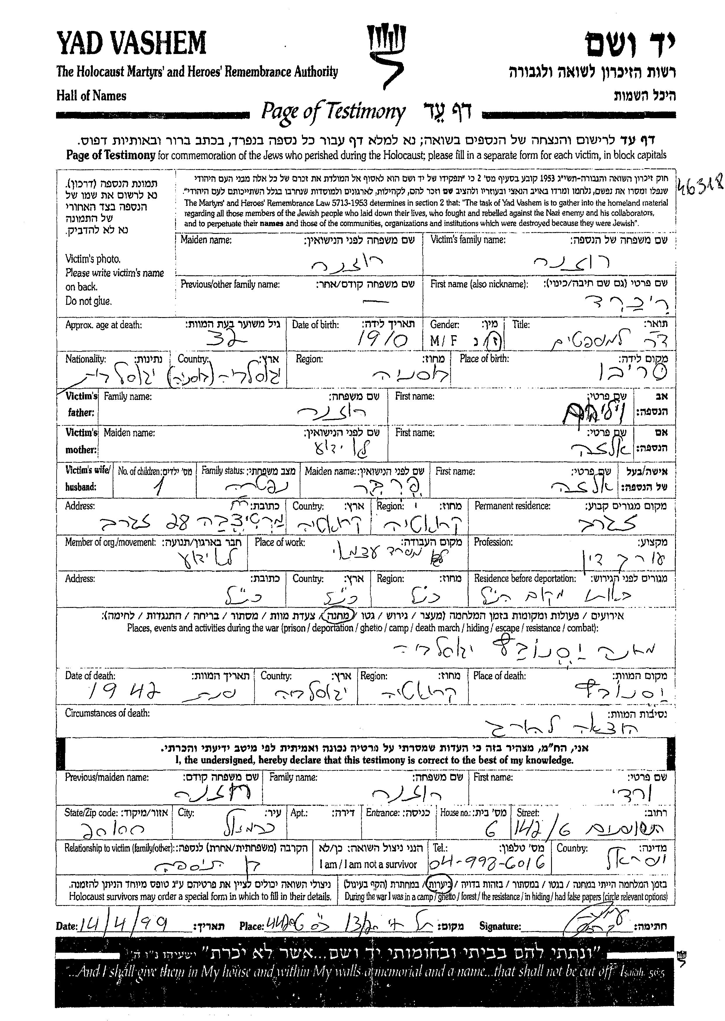 Yad Vashem - Pages of Testimony Names Memorial Collection