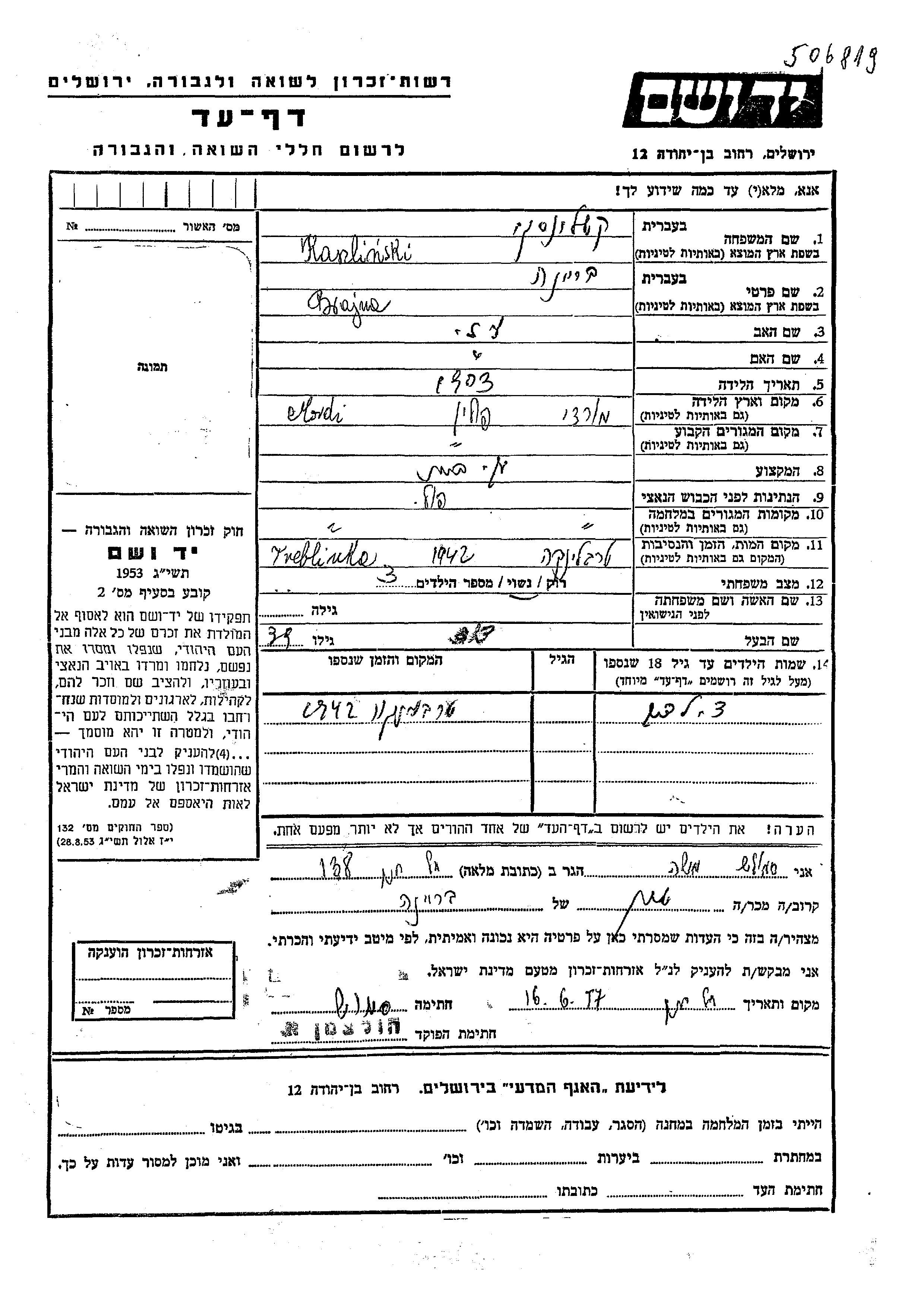 Yad Vashem - Pages of Testimony Names Memorial Collection