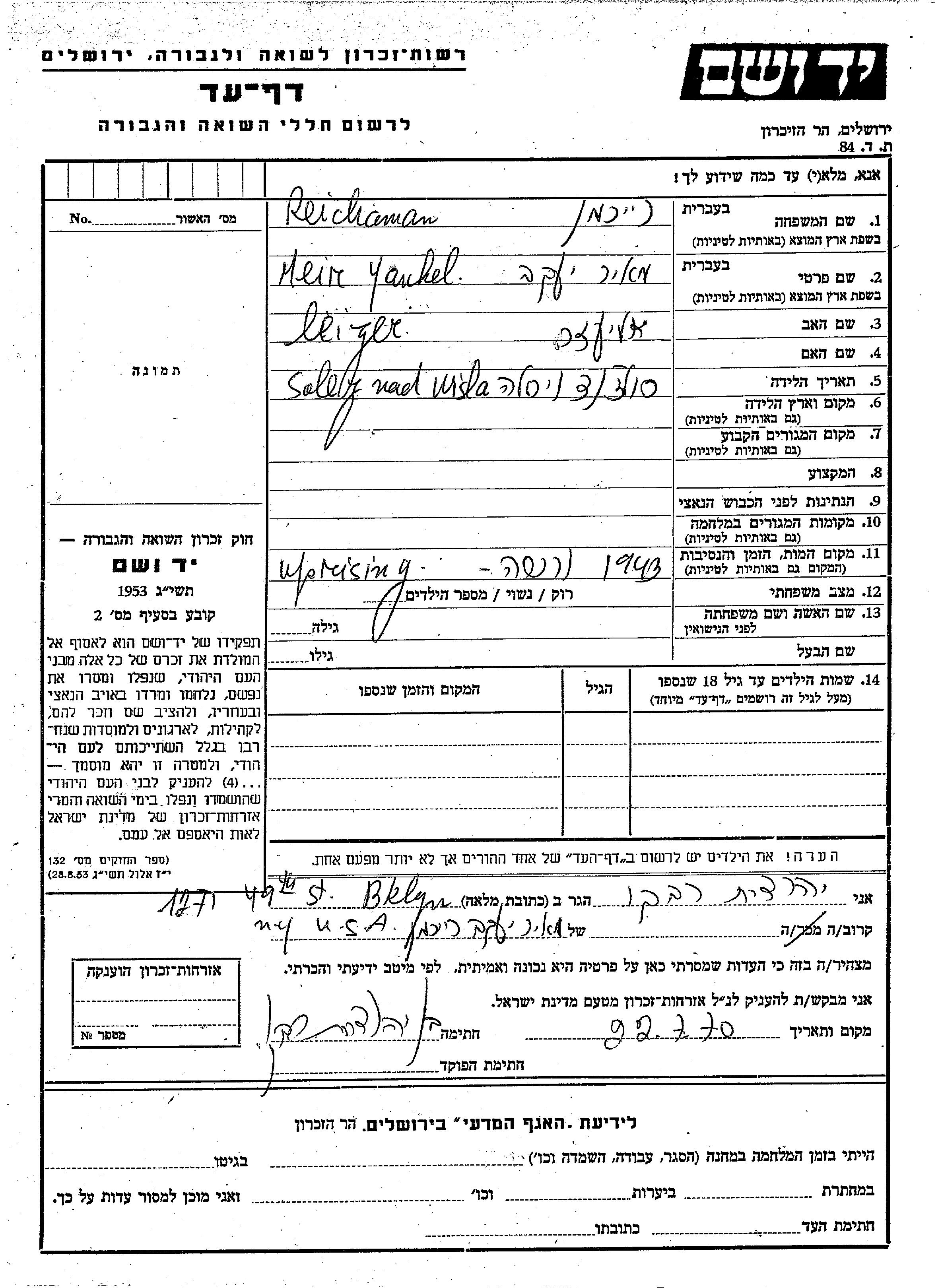 Yad Vashem - Pages of Testimony Names Memorial Collection