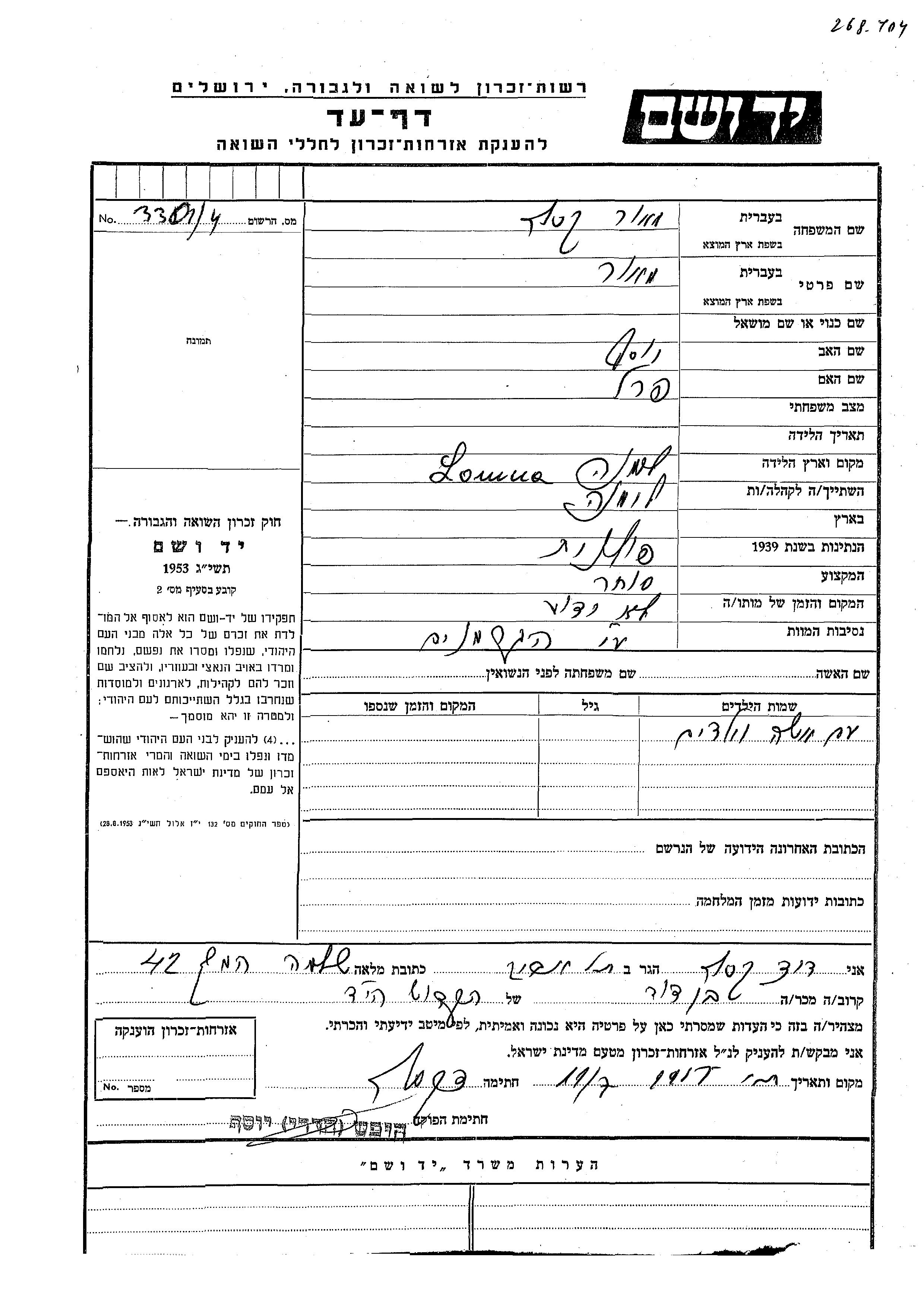 Yad Vashem - Pages of Testimony Names Memorial Collection