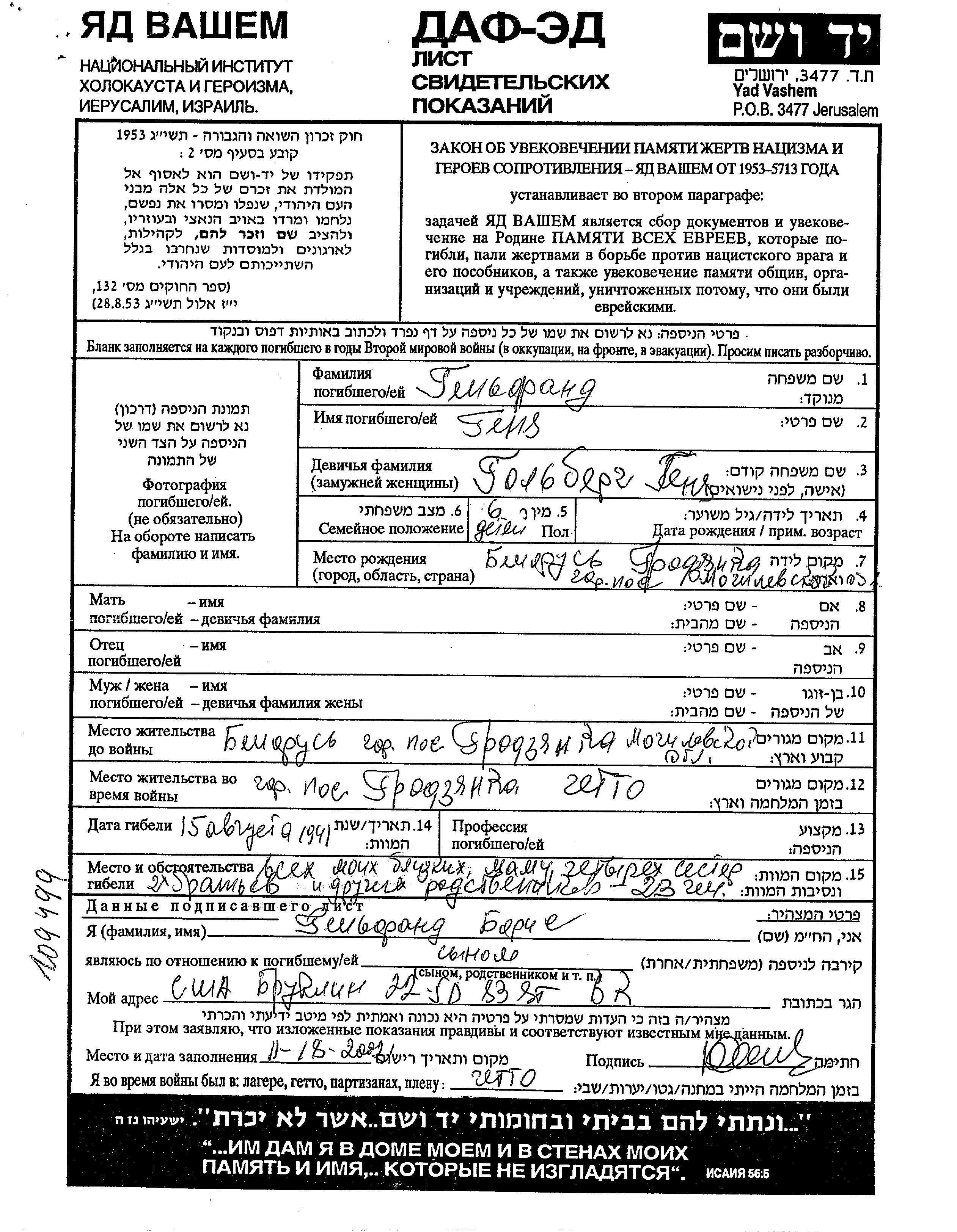 Yad Vashem - Pages of Testimony Names Memorial Collection