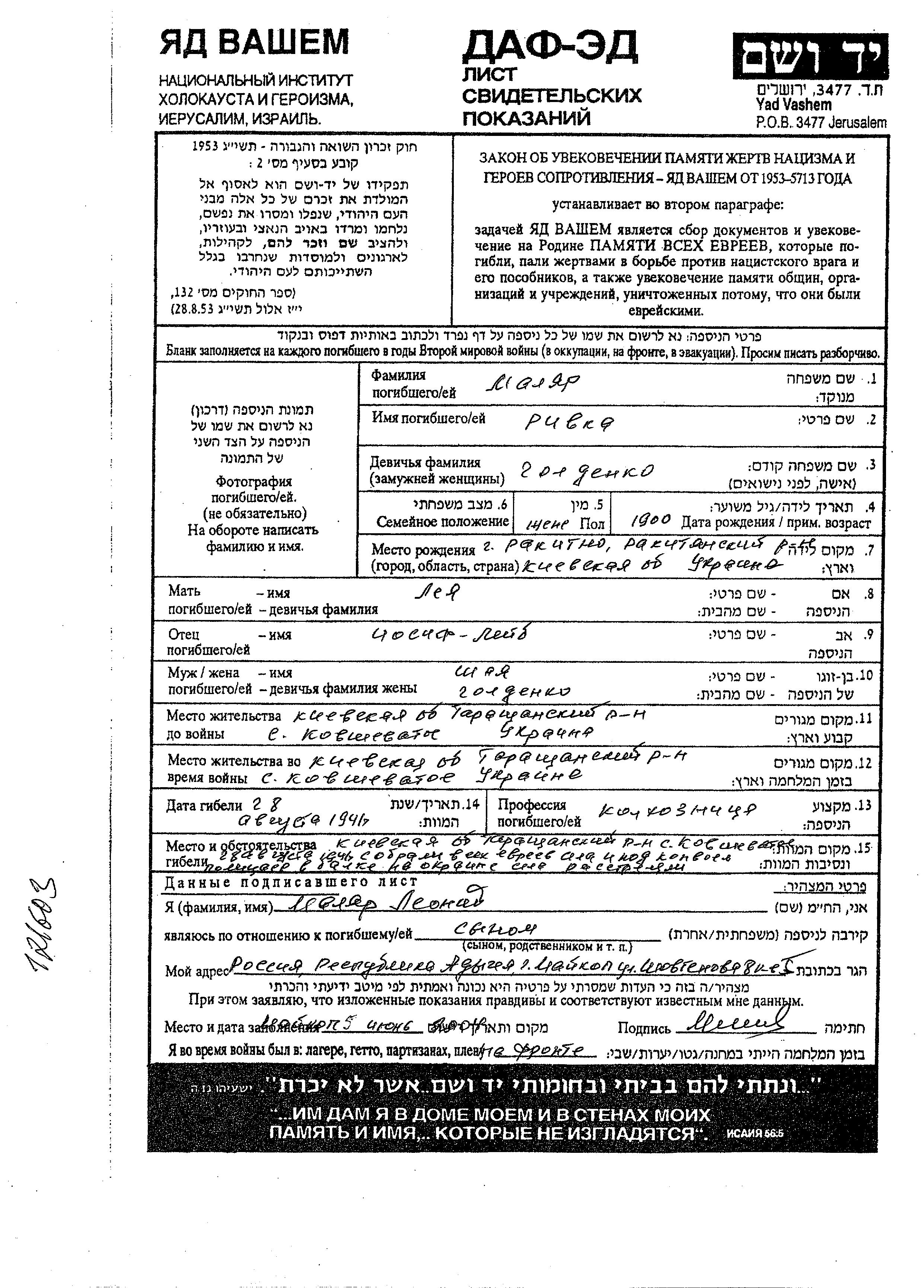 Search by last name of the submitter of the Page of Testimony, including diminutives or nicknames