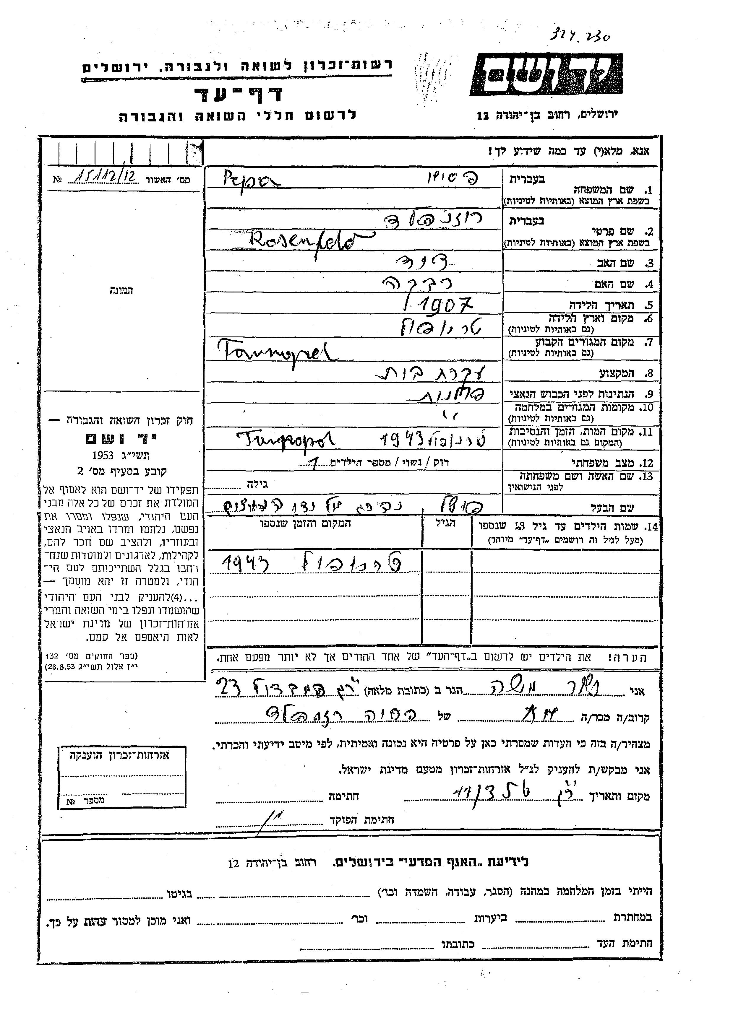 Yad Vashem - Pages of Testimony Names Memorial Collection