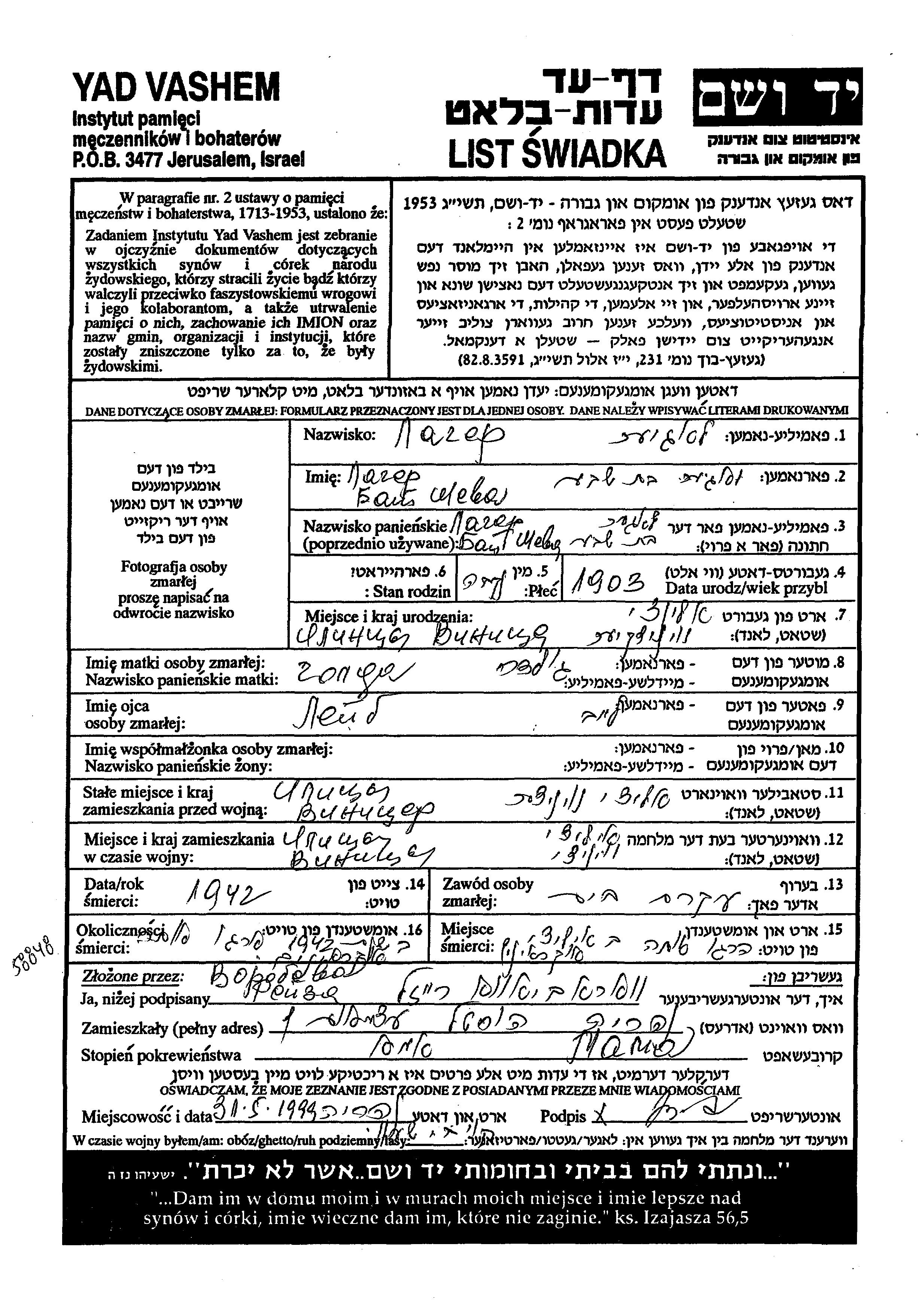 Yad Vashem - Pages of Testimony Names Memorial Collection