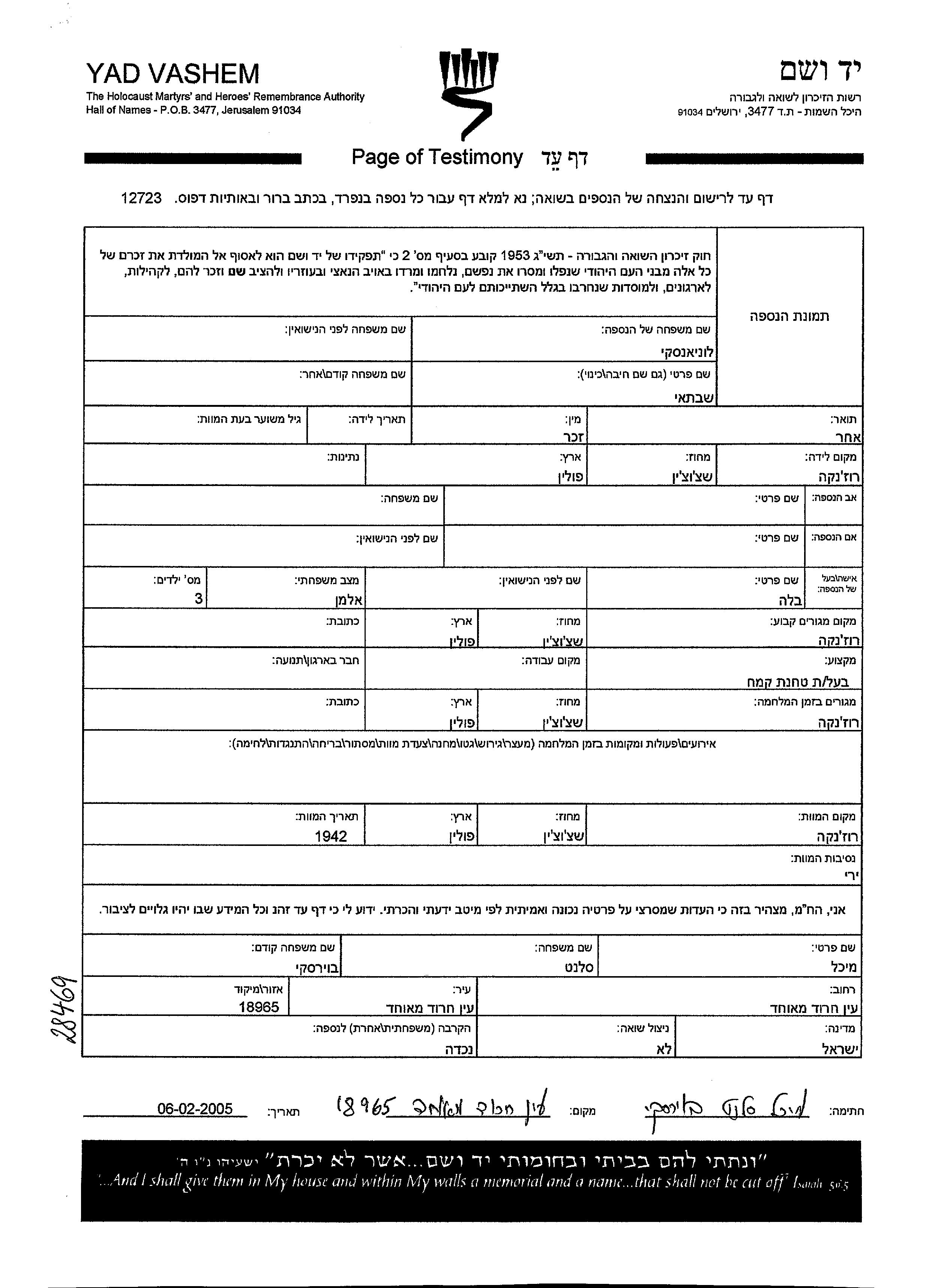 Shabtai Lunianski was born in Rozhanka, Poland. He was a widower of Bela. Prior to WWII he lived in Rozhanka, Poland. During the war he was in Rozhanka, Poland. Shabtai was murdered in the Shoah. Place of death: Rozhanka, Poland, 1942.