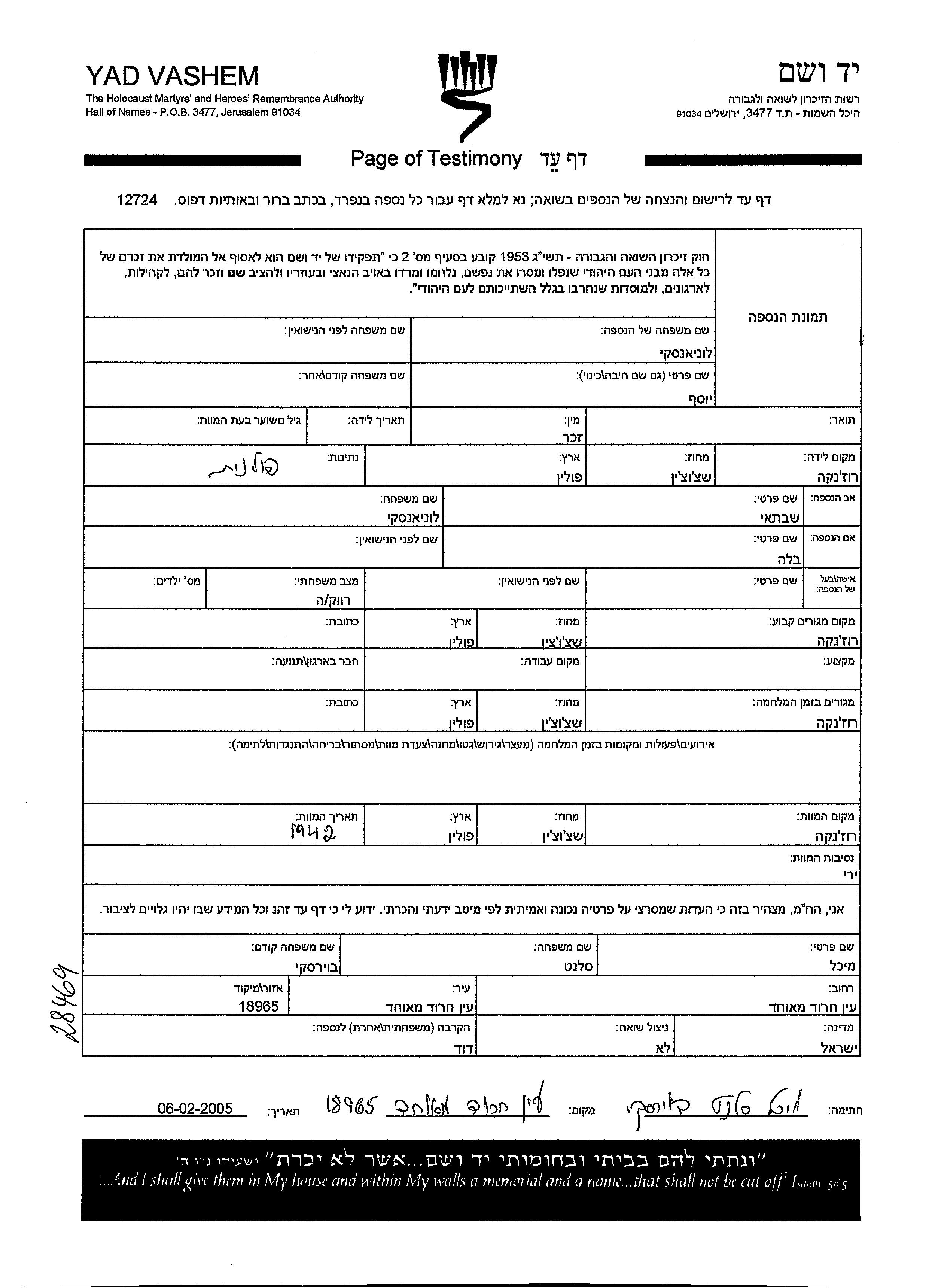 Yosef Lunianski was born in Rozanka, Poland to Shabtai and Bela. He was single. Prior to WWII he lived in Rozanka, Poland. During the war he was in Rozanka, Poland. Yosef was murdered in the Shoah. Place of death: Rozanka, Poland, 1942.