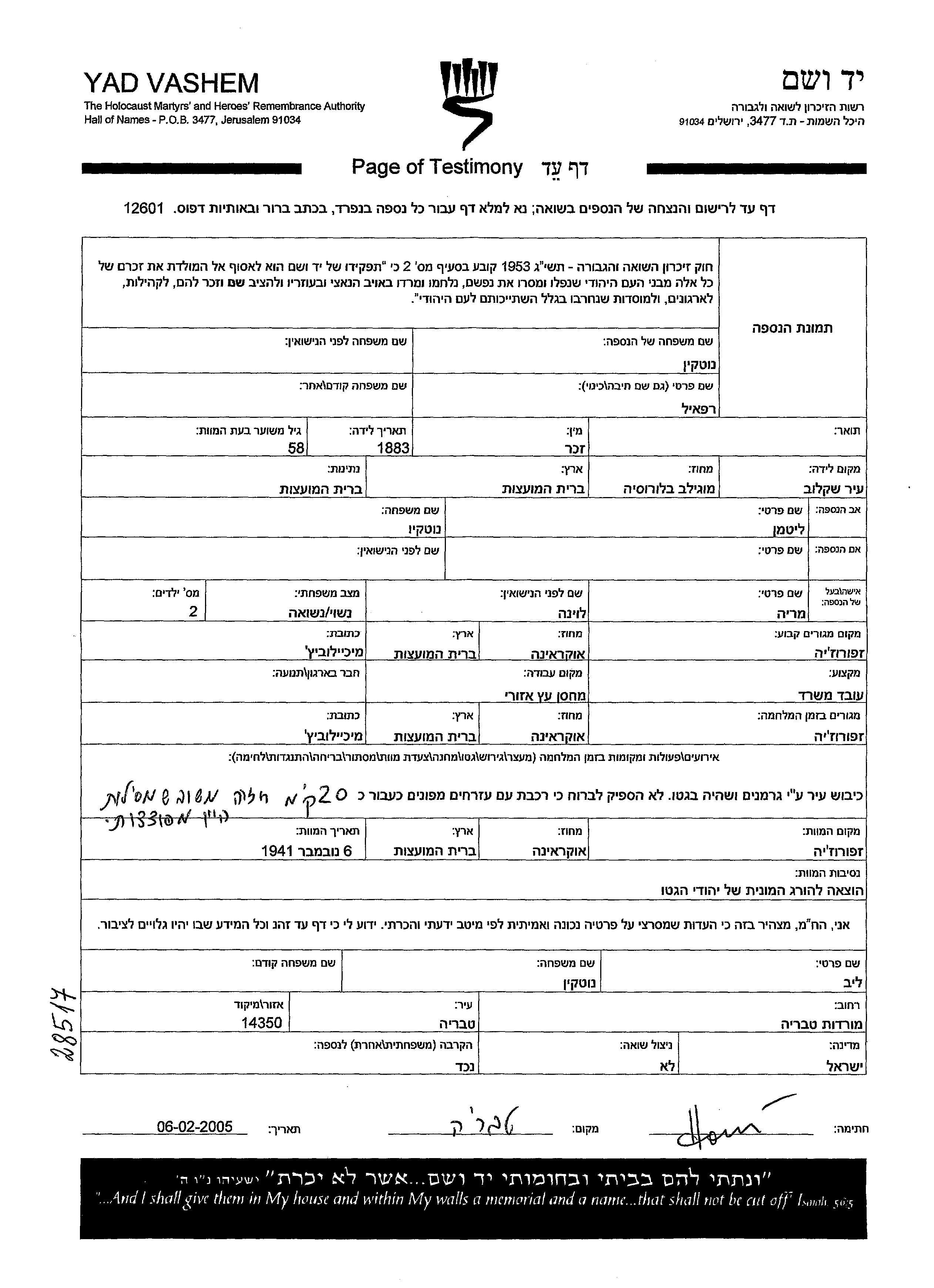 Notkin Rafail 1883 Zaporozhye, Ukraine (USSR) Page of Testimony (digital signed)