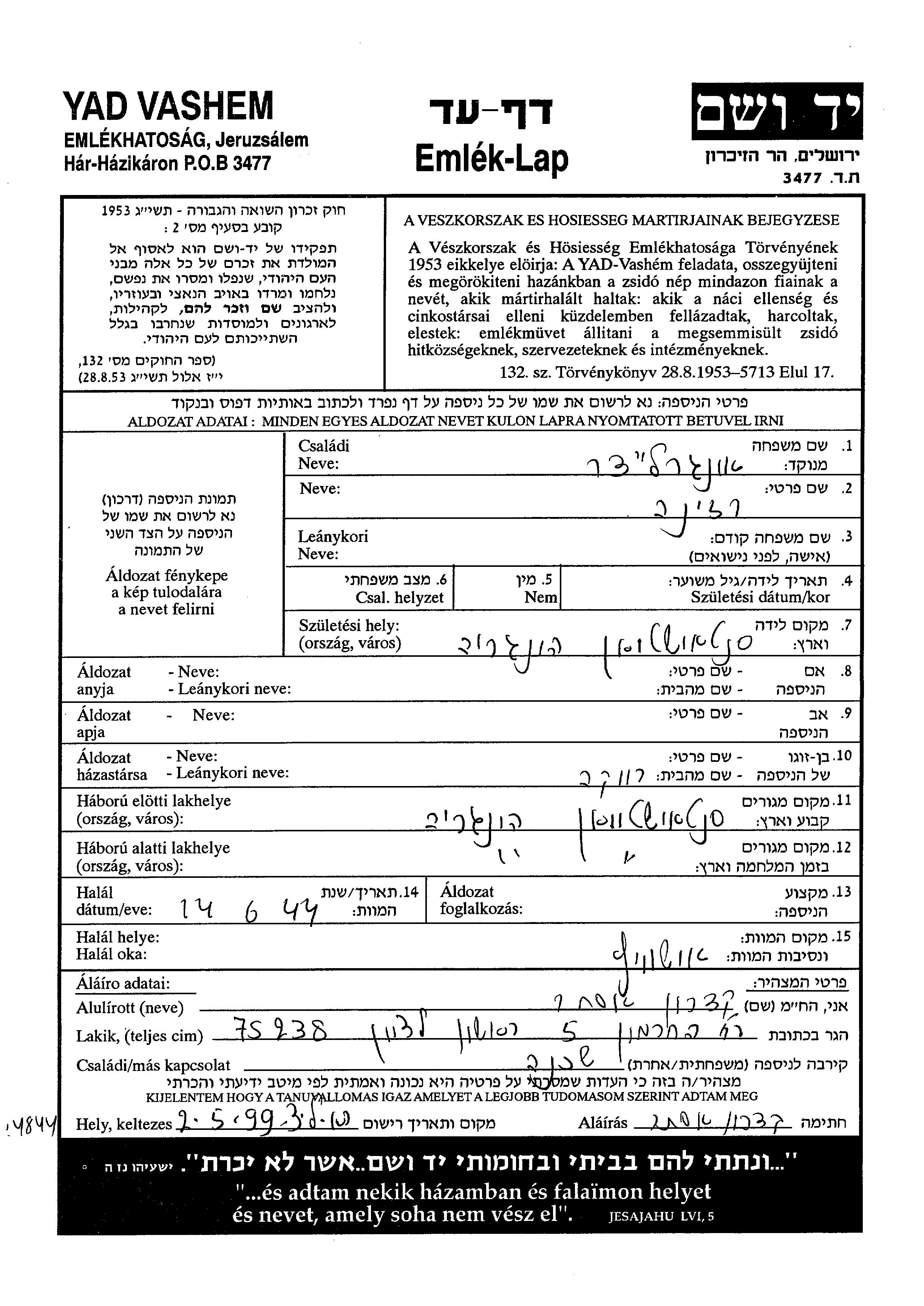 Yad Vashem - Pages of Testimony Names Memorial Collection