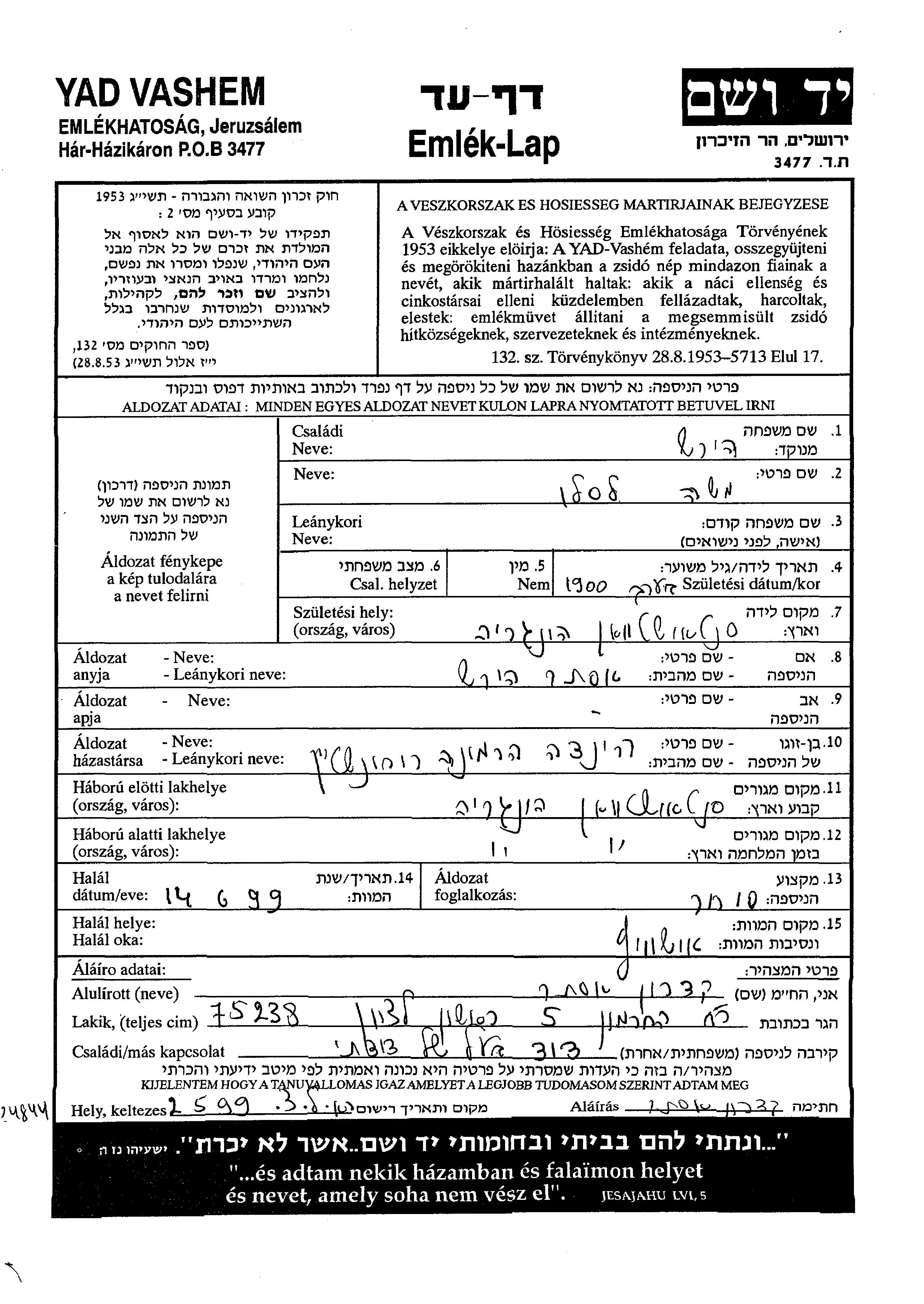 Yad Vashem - Pages of Testimony Names Memorial Collection
