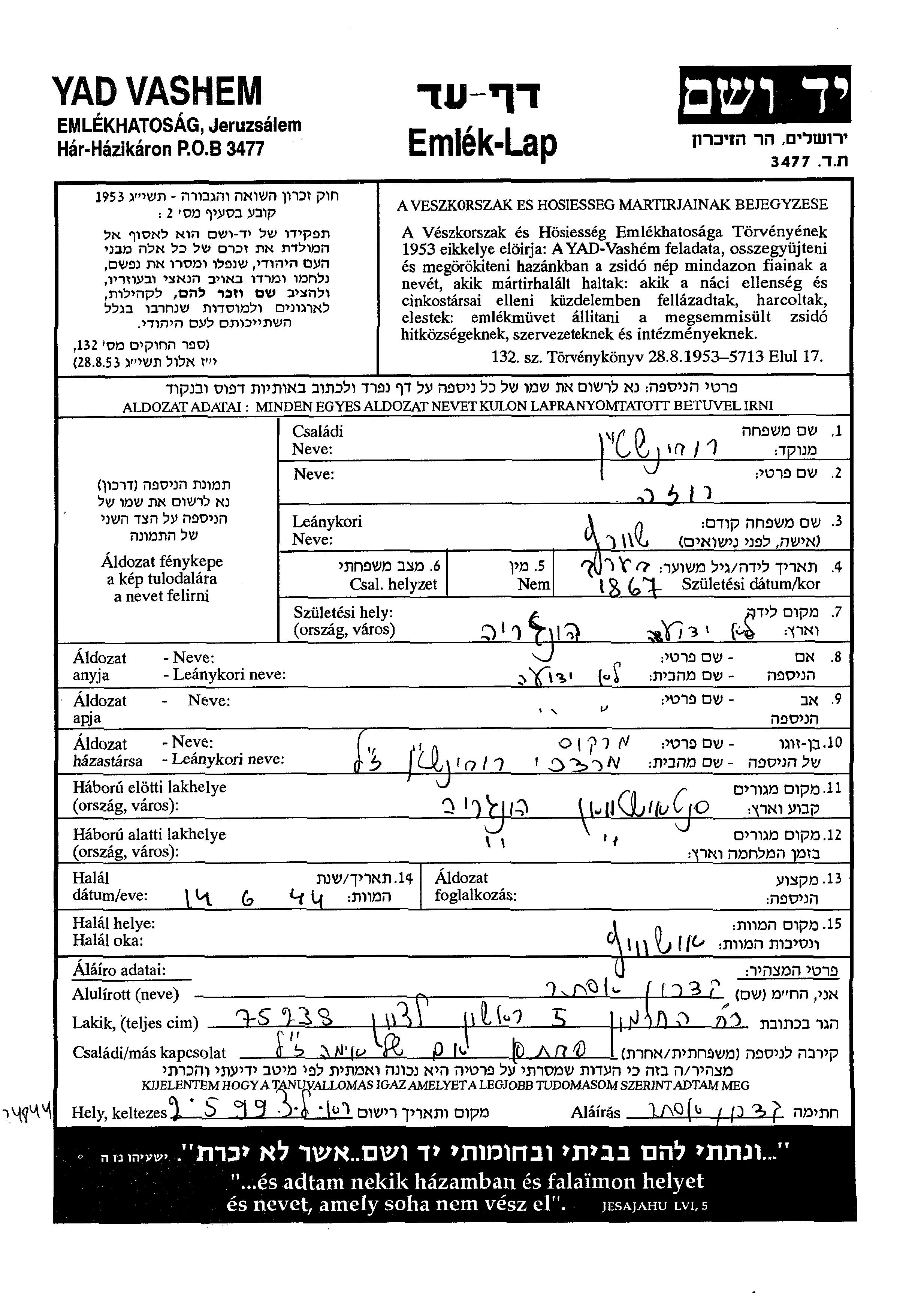 Yad Vashem - Pages of Testimony Names Memorial Collection