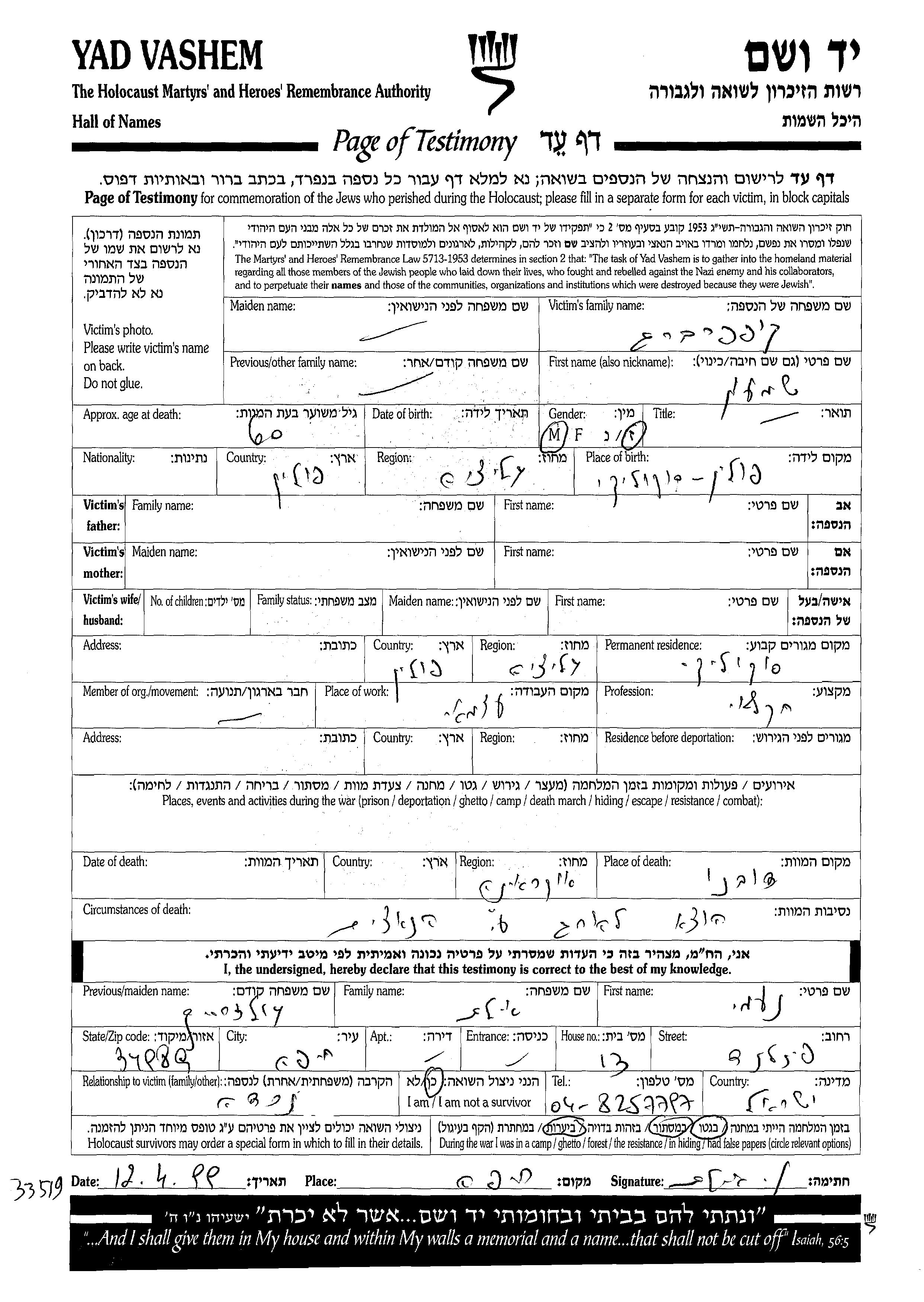 Shimon Kupferberg was born in Sokoliki, Poland. He was an agriculturist. Prior to WWII he lived in Sokoliki, Poland. During the war he was in Sokoliki, Poland. Shimon was murdered in the Shoah. Place of death: Dubno, Poland.