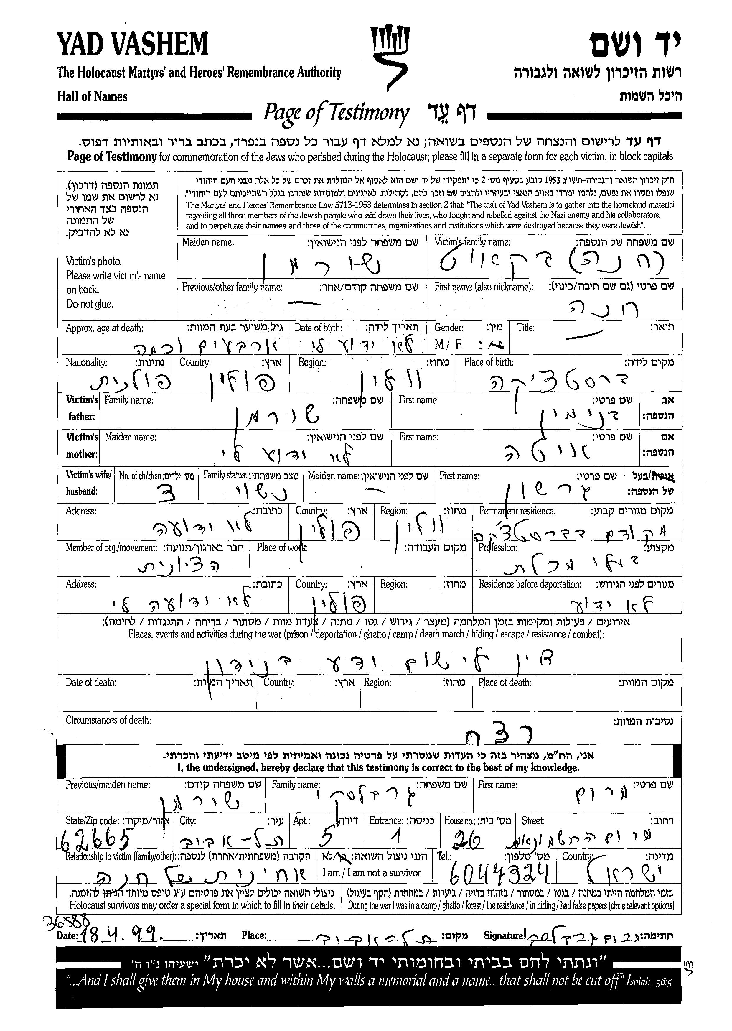 Yad Vashem - Pages of Testimony Names Memorial Collection