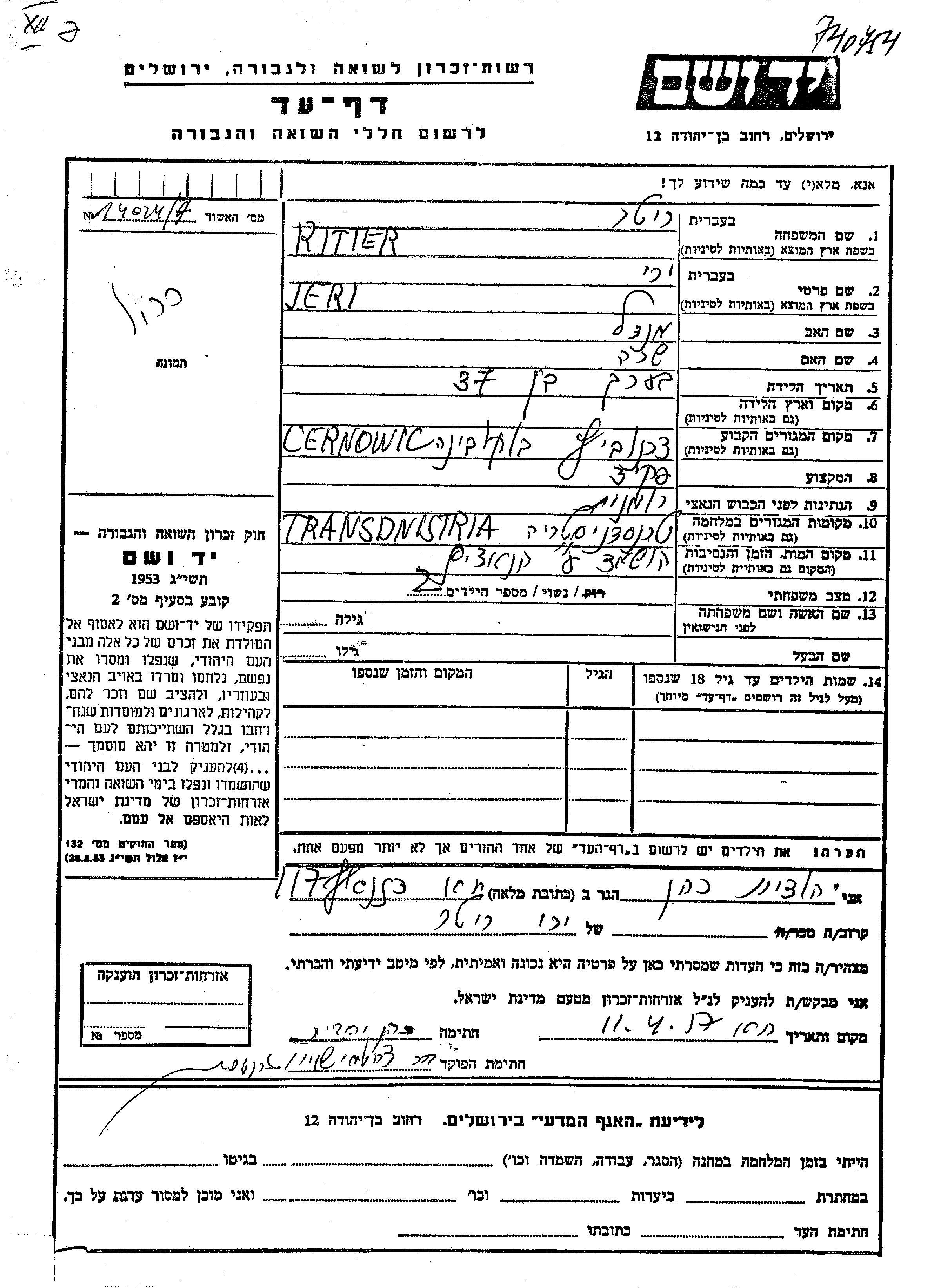 Ritter Jeri Czernowitz, Romania Page of Testimony