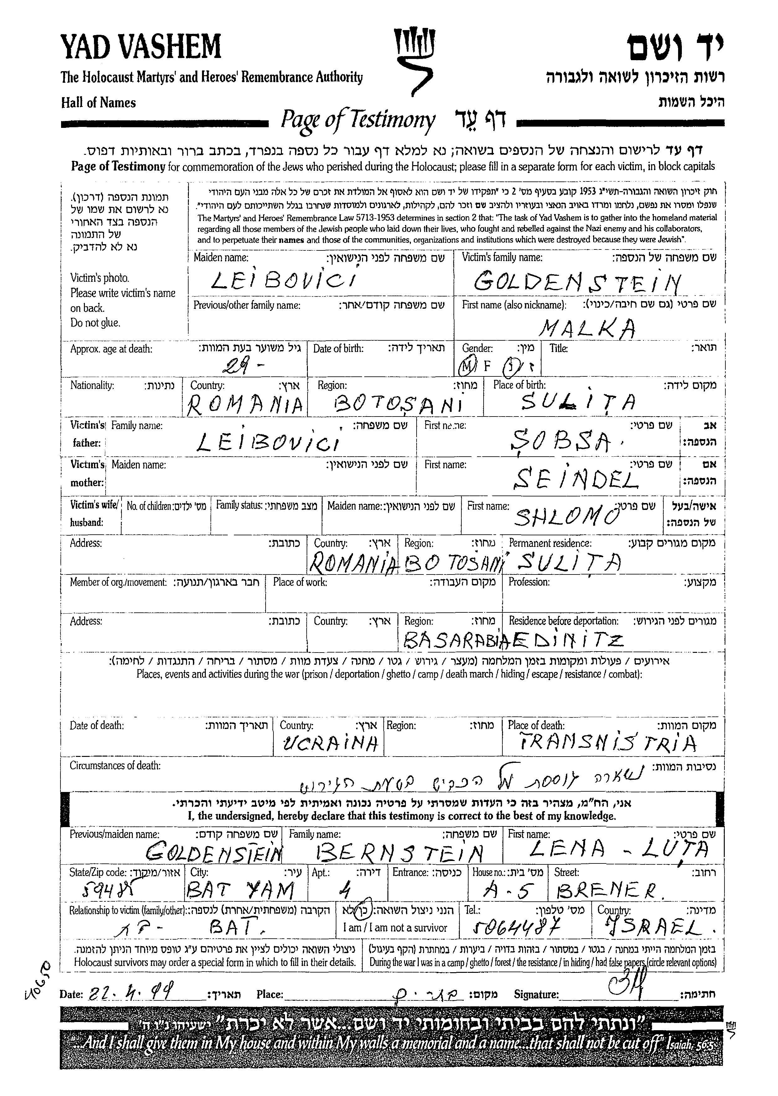 Search by last name of the submitter of the Page of Testimony, including diminutives or nicknames