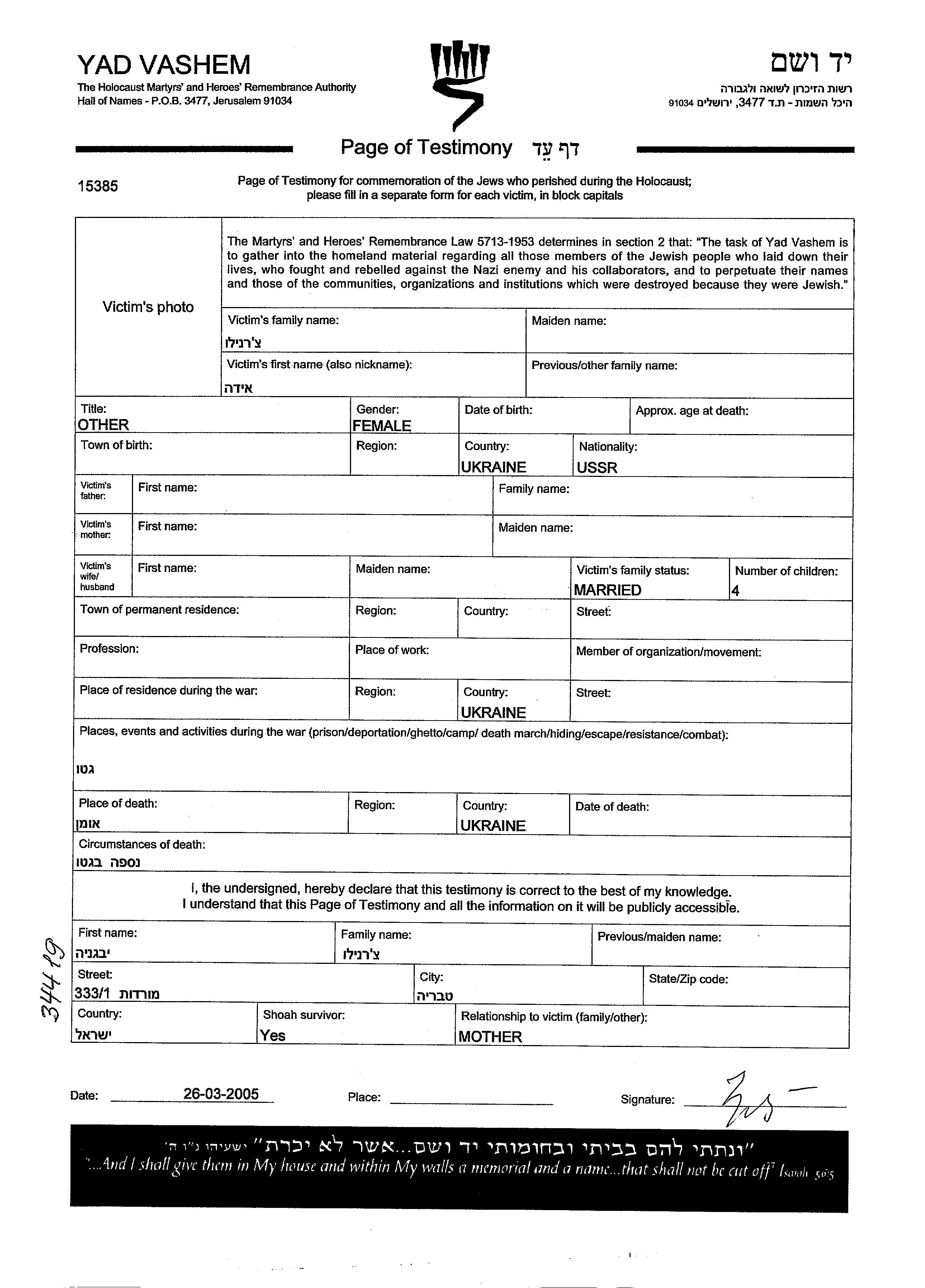 Chernilo Ida unstated place, Page of Testimony (digital signed)