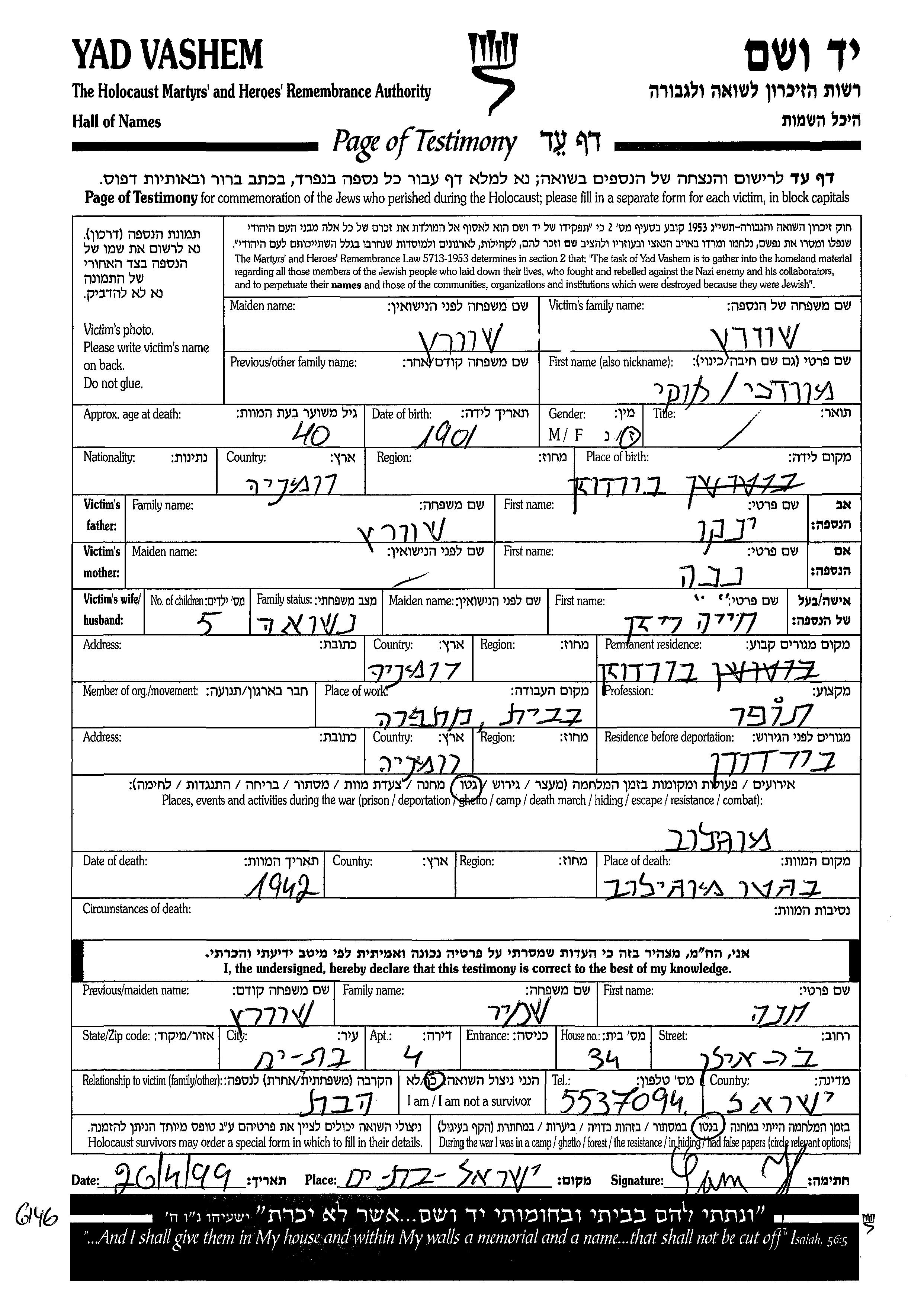 Yad Vashem - Pages of Testimony Names Memorial Collection